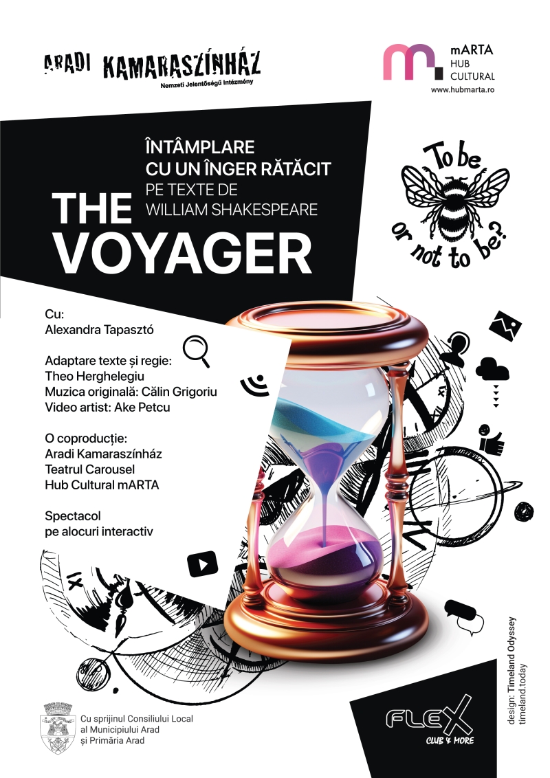 „The Voyager este un spectacol despre cum ratăm întâlniri (sau nu) în viață – de data asta: întâlnirea cu un înger. Un înger călător, de rangul III, venit să ajute oamenii să se adune din risipirea devenită epidemică; poate chiar pandemică! în urma degringoladei generale. O monodramă despre dilemele omului de azi și întrebările pe care și le pune frecvent, sau pe care a încetat să și le mai pună.”, scriu cei de la Hubul Cultural mARTA în descrierea spectacolului. Textul este jucat în mare parte în limba romană, dar aproximativ un sfert este în limba engleză, existând supratitrare în limba engleză pentru tot spectacolul. Piesa urmează să participe în festivalul internațional cu tematica Shakespeare, de la Verona, în 2024.