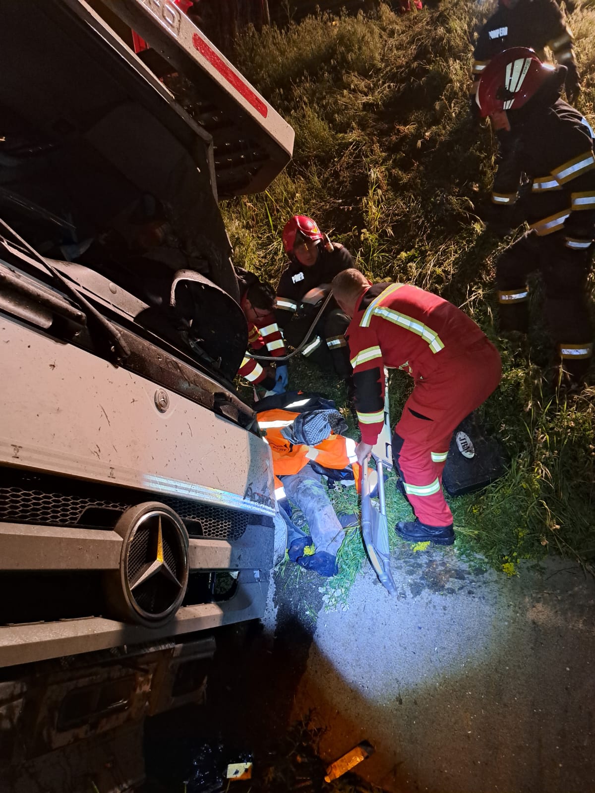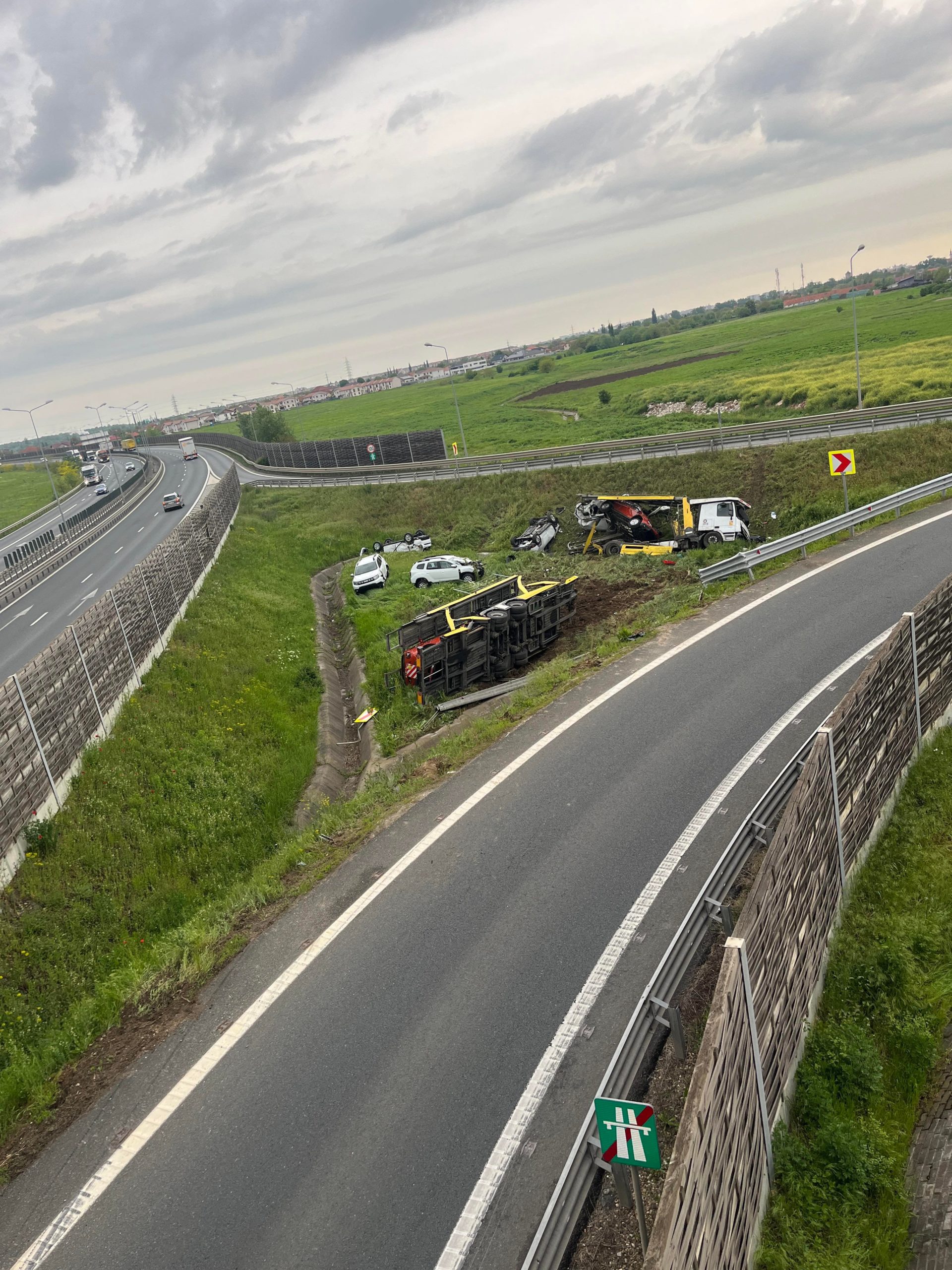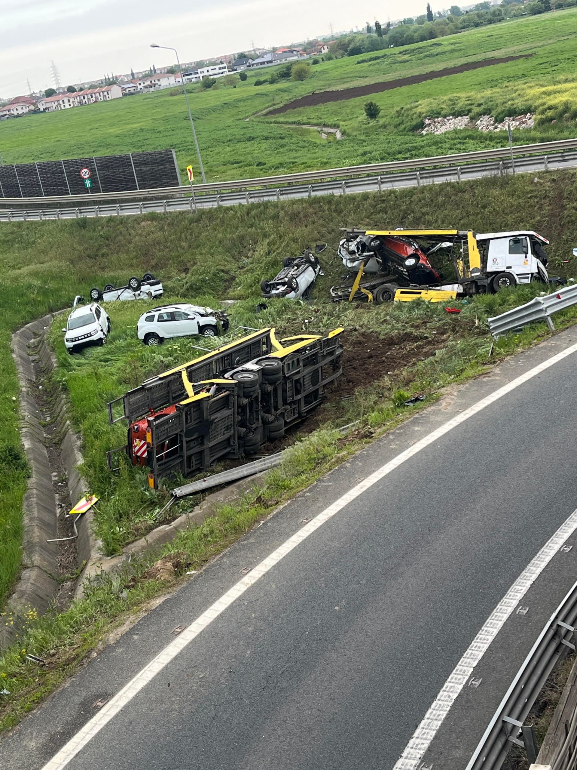 Un echipaj SMURD, un echipaj descarcerare și unul de stingere, cu 10 pompieri, au intervenit pe A1, în zona ieșirii spre Zădăreni, la un accident rutier. La fața locului, echipajele au găsit un autotren ce transporta autoturisme, răsturnat în afara părți carosabile. Șoferul era încarcerat și inconștient, dar în viață. Acesta a fost extras în viață de echipajul de descarcerare, fiind transportat la Unitatea de Primiri Urgențe a Spitalului Clinic Județean Arad.