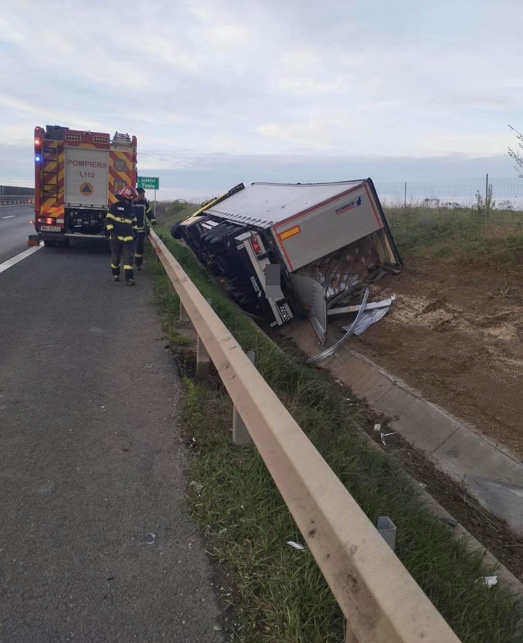 Sâmbătă dimineață, în jurul orei 7:15, pe autostrada A1, la km 522+800, in municipiul Arad – sensul de mers spre Timișoara, un autotren a acroșat parapetul marginal și s-a răsturnat în șanț. Banda de urgență este închisă. „Se estimează reluarea circulației normale până la ora 14”, transmite Direcția Regională de Drumuri și Poduri Timișoara.