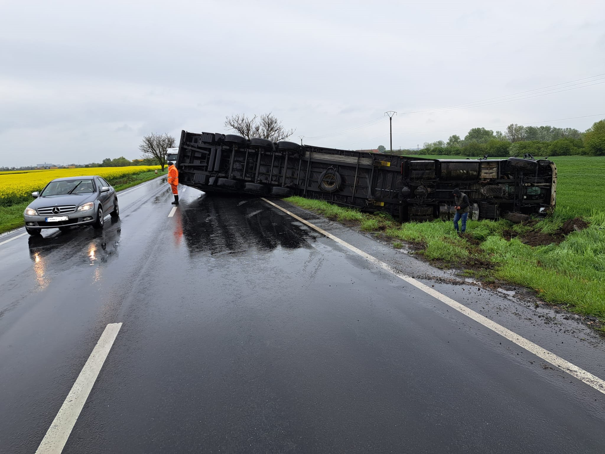 PECICA. Un camion care s-a răsturnat pe partea carosabilă îngreunează circulaţia pe DN 7, la ieşirea din Pecica spre Nădlac. Potrivit Direcţiei Regionale de Drumuri şi Poduri Timişoara, „în jurul orei 11:50, pe DN 7 km 571+100 (Pecica) un autotren s-a răsturnat în afara părţii carosabile, remorca acestuia blocând partea stângă a drumului naţional. Traficul se desfăşoară îngreunat pe jumătate de cale până la ora 13:00”.