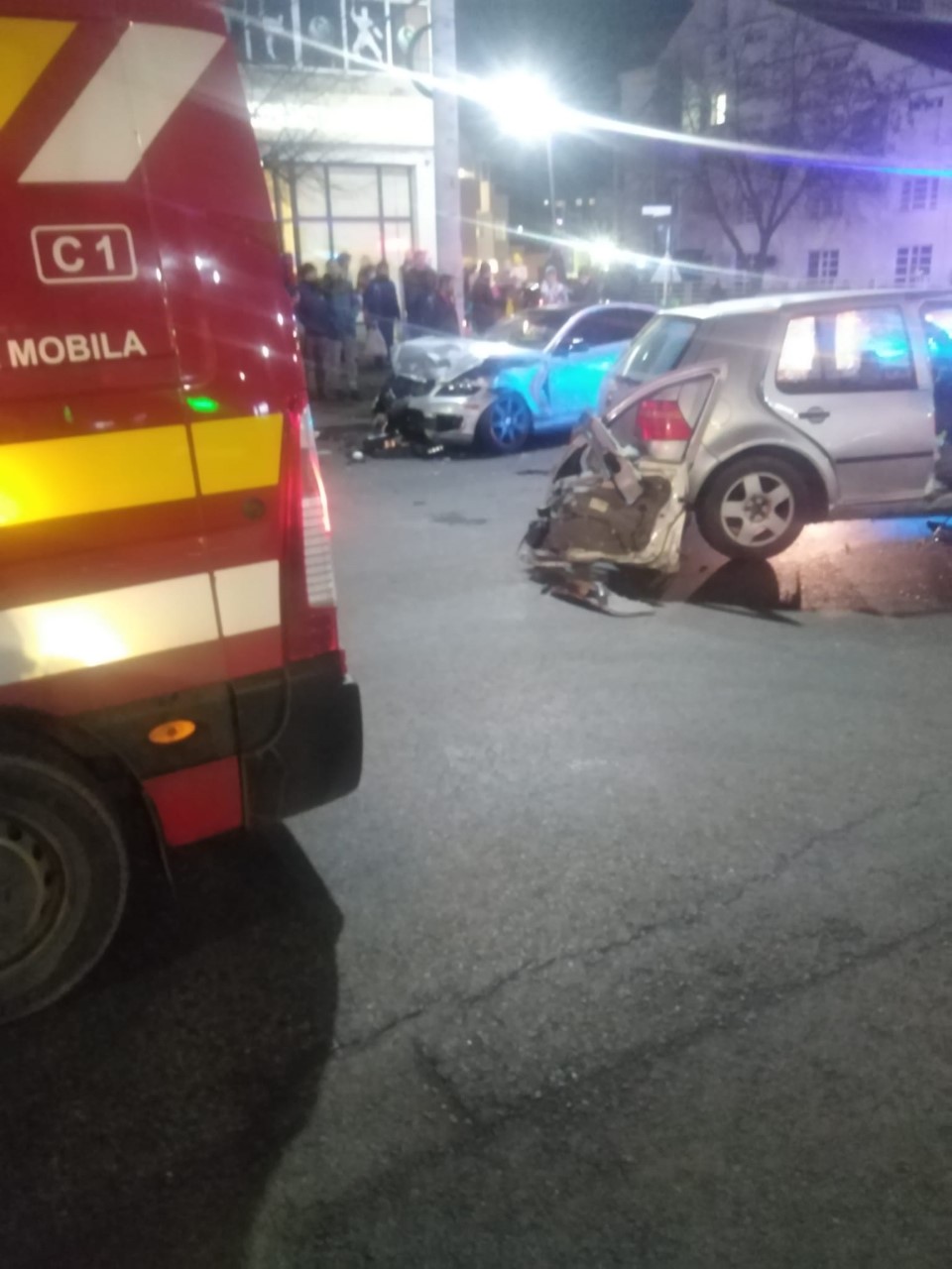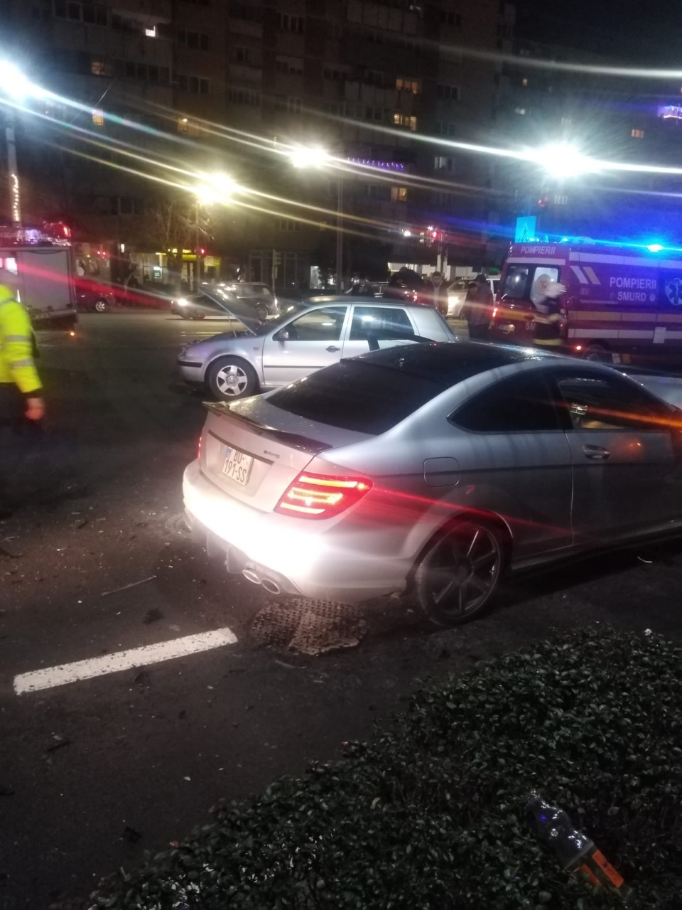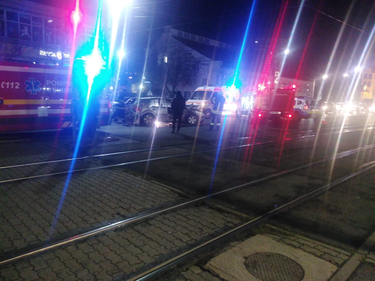 UPDATE: Accidentul rutier s-a produs, se pare, după ce unul dintre cei doi șoferi – un bărbat în vârstă de 54 de ani, din Arad – a pătruns în intersecție pe culoarea roșie a semaforului. “În seara de 17 decembrie, în jurul orei 19:35, un arădean de 54 de ani, a condus un autoturism pe strada Fulgerului. La intersecția cu Calea Aurel Vlaicu a pătruns în intersecție, unde a intrat în coliziune cu un autoturism condus de un arădean de 30 de ani. În urma impactului a fost rănit șoferul primului autoturism și o femeie de 54 de ani, pasageră, aceștia fiind transportați la spital în vederea evaluării și acordării de îngrijri medicale.Niciunul dintre cei doi șoferi nu consumase alcool.Polițiștii continuă cercetările pentru stabilirea cu exactitate a cauzelor și împrejurărilor care au dus la producerea accidentului, fiind întocmit un dosar penal pentru vătămare corporală din culpă”, precizează IPJ Arad.
