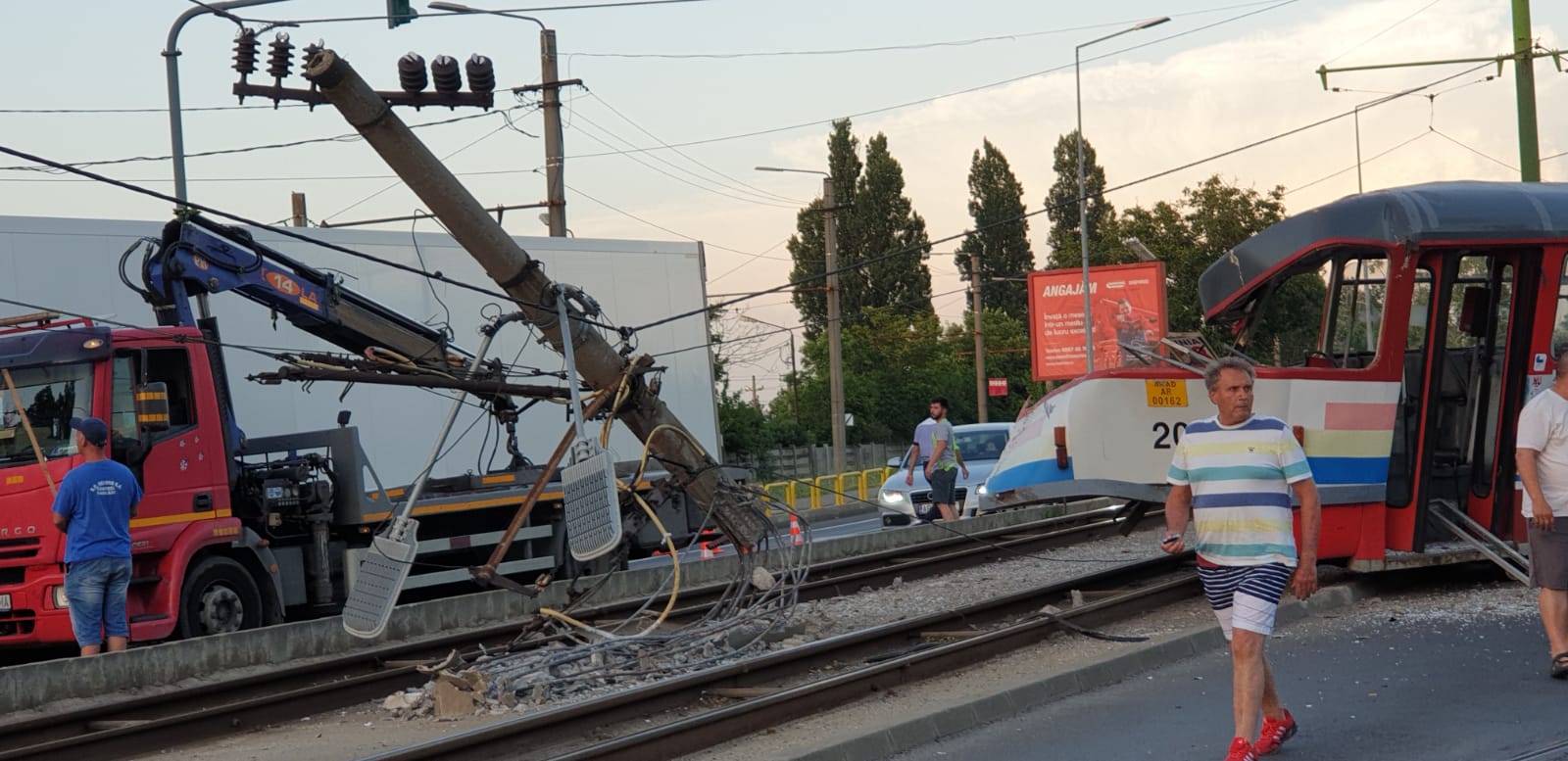 Acesta a menționat că o pasagera din al doilea vagon a fost rănită ușor. Dat fiind faptul că s-au dărâmat doi stâlpi, încă nu se știe la ce oră se va relua circulația tramvaielor.