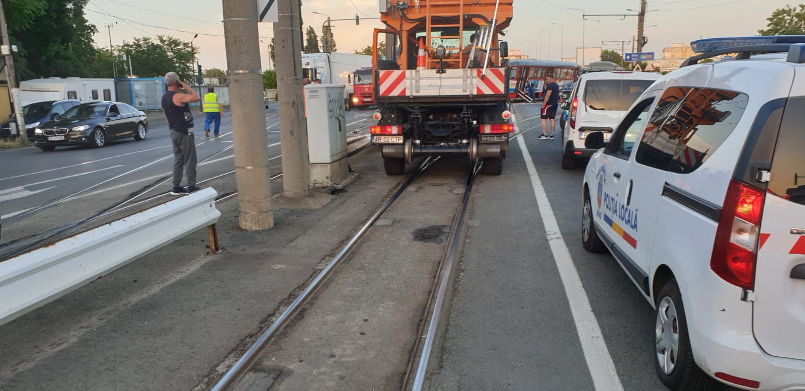 Urcarea pe viaduct, dinspre Calea Iuliu Maniu către Calea Radnei, este blocată, după ce un tramvai al Companiei de Transport Public Arad a deraiat. Acesta circula pe linia 18b.