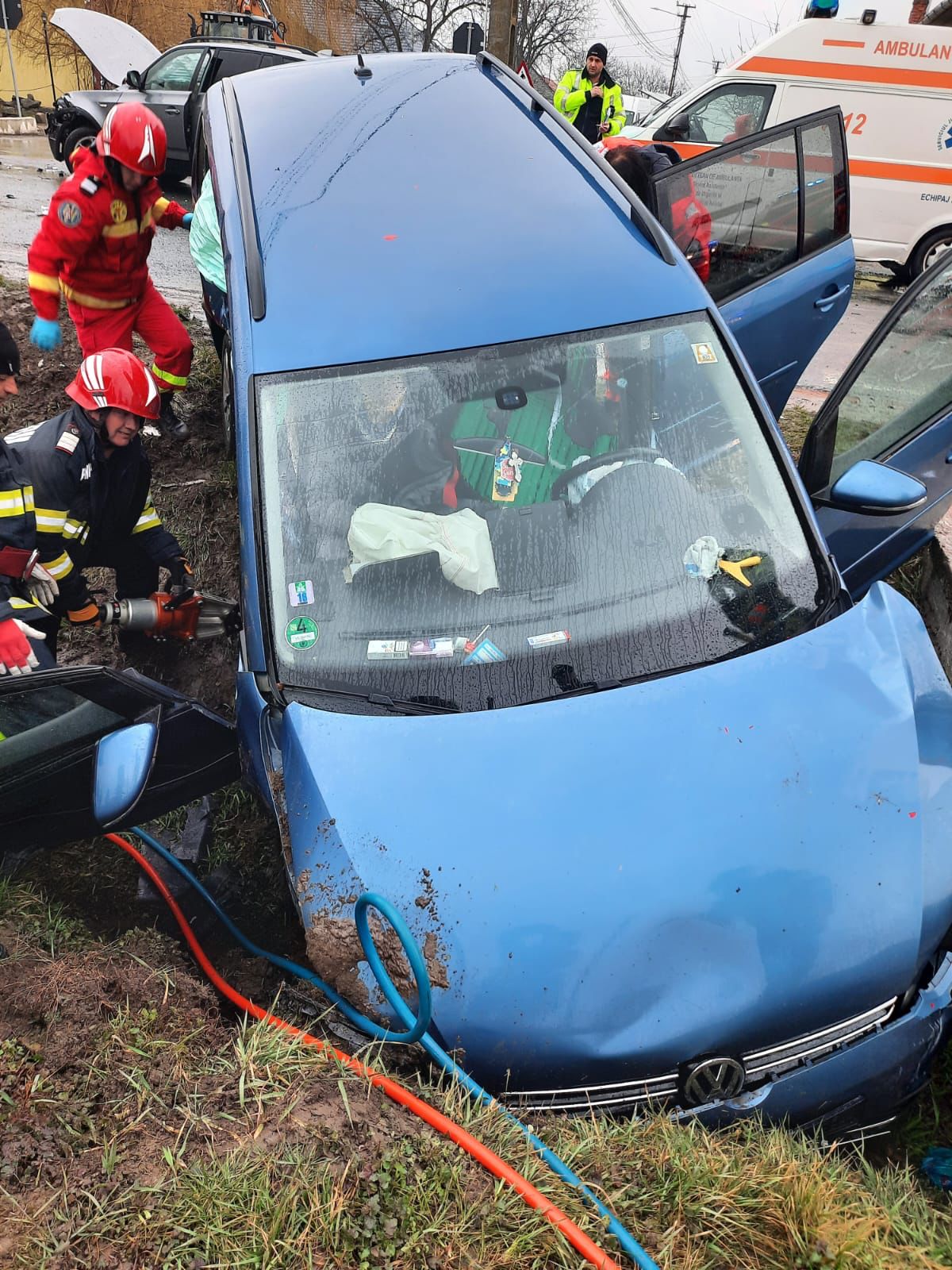 UPDATE 1: În cele trei autoturisme se aflau șapte persoane, două fiind rănite. Dintre cele două victime, una a rămas încarcerată.
