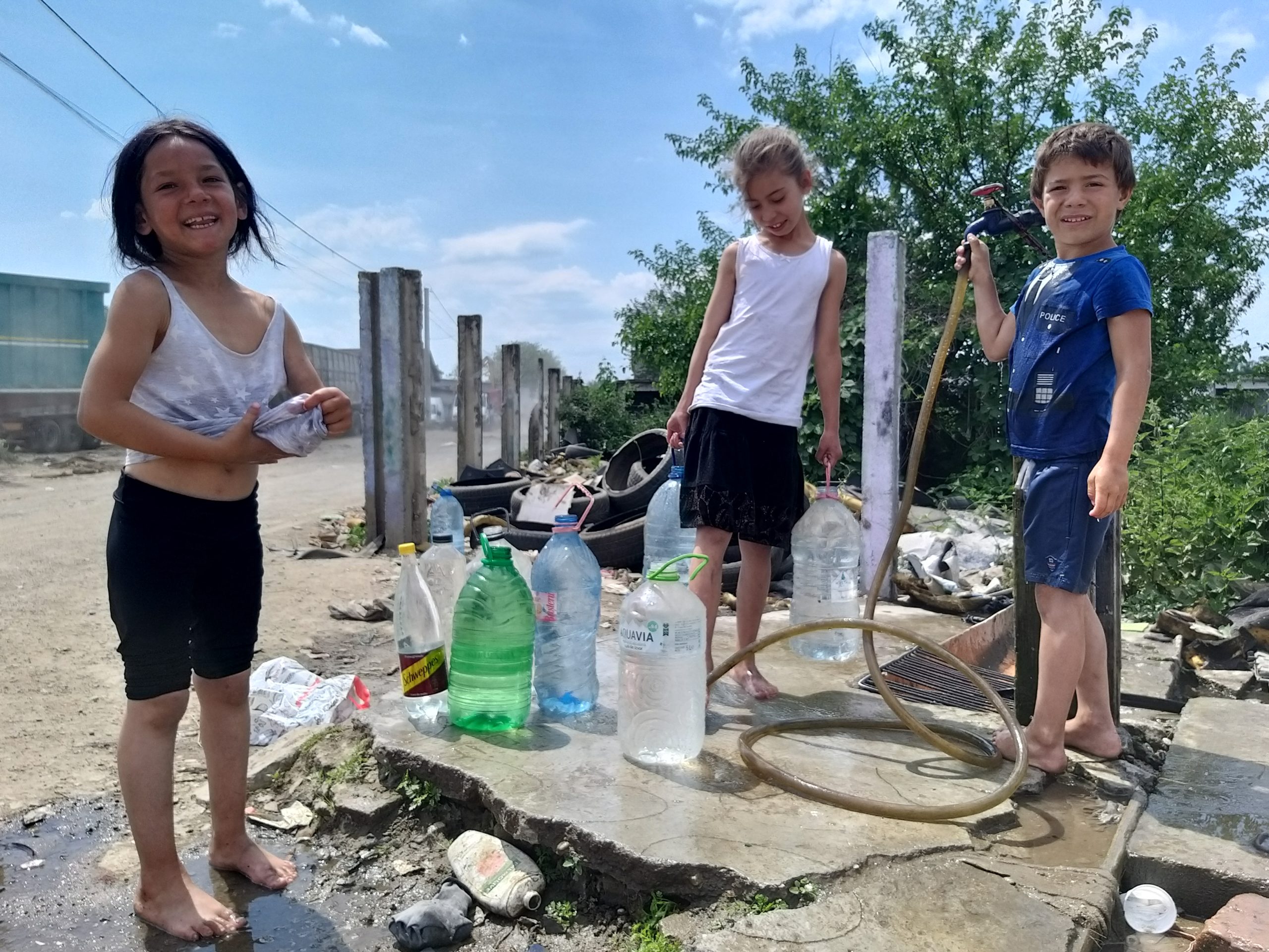 ARAD. Darius, Natalia şi Anastasia. I-am găsit fericiţi, făcând provizii de apă potabilă de la robinetul aflat la intersecţia străzilor Mărului şi Sabinelor. Erau desculţi şi cu hainele ude leoarcă. Le mai storceau din când în când, ca să le poată uda din nou cu câte un jet ce ţâşnea din furtun. Căci, dincolo de treaba pe care o aveau, copiii se jucau. Se mai şi răcoreau, că, deh, afară erau 27 de grade… Se mai şi protejau de praful pe care îl lăsau în urma lor maşinile mergând pe drumul de pământ… Şi poate se mai şi spălau oleacă.