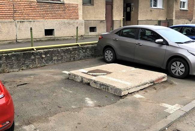 Soluția găsită de primărie este exact cea indicată de arădeanul Silviu Dascăl și de noi: în jurul capacului de la cămin a fost construită o rampă ce permite șoferilor să intre în locul de parcare. Astfel, cele două locuri de parcare au fost redate arădenilor. Semn că se poate!