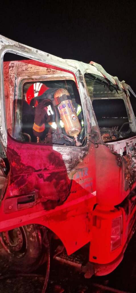 ARAD. Detașamentul de Pompieri Arad a fost solicitat, marți seara, în jurul orei 19:15, să intervină pentru stingerea unui incediu izbucnit la un camion parcat în curtea S.C. PORR Construct din comuna Fântânele.La fața locului, s-au deplasat două autospeciale de stingere cu apă și spumă, dar și pompierii voluntari ai Serviciului Voluntar pentru Situații de Urgență Fântânele.