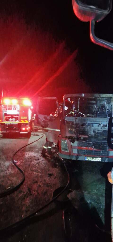 “Incendiul se manifestă prin ardere generalizată la nivelul cabinei camionului, fără posibilitate de propagare la alte vehicule sau construcții. În acestea momente se acționează pentru stingerea incendiului. Nu sunt înregistrate victime. Intervenția este în dinamică” au transmis reprezentanții ISU Arad.