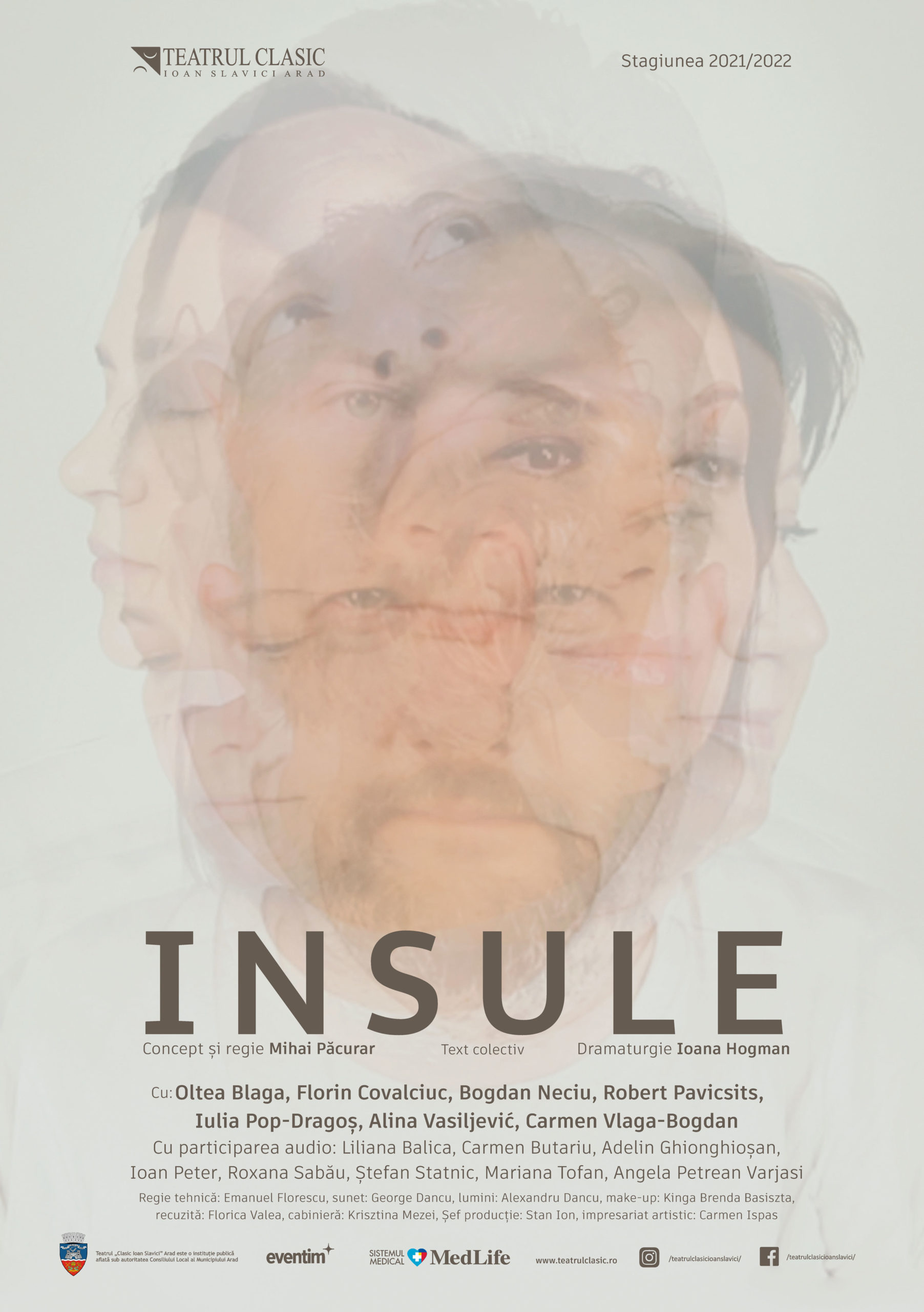 Un colaj afectiv, o hartă emoțională a Aradului, sau o oglindă a momentului. Aceasta este descrierea în câteva cuvinte a unui demers teatral menit să (re)descopere acea legătură esențială pe care fiecare dintre noi ar trebui să o avem cu urbea. Spectacolul „Insule”, pe care trupa Teatrului Clasic „Ioan Slavici” Arad îl va scoate la public în 21 mai, de la ora 19, în Holul Roșu al Sălii Studio – avanpremiera și în 22 mai, de la aceeași oră, premiera – este un concept semnant de Mihai Păcurar, cel care semnează și regia. Textul este unul colectiv, iar dramaturgia îi aparține Ioanei Hogman.