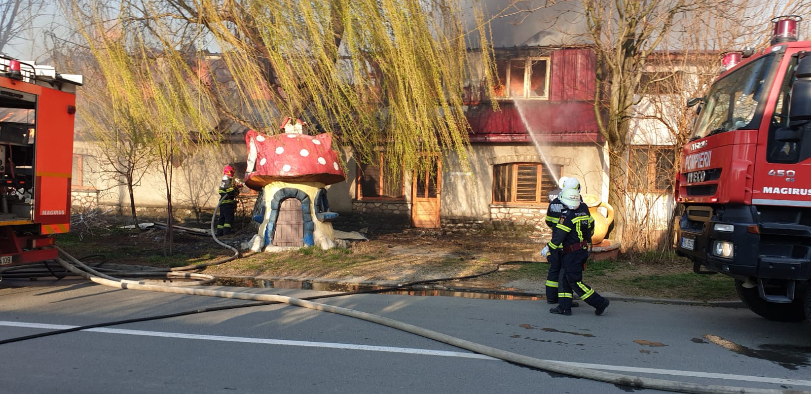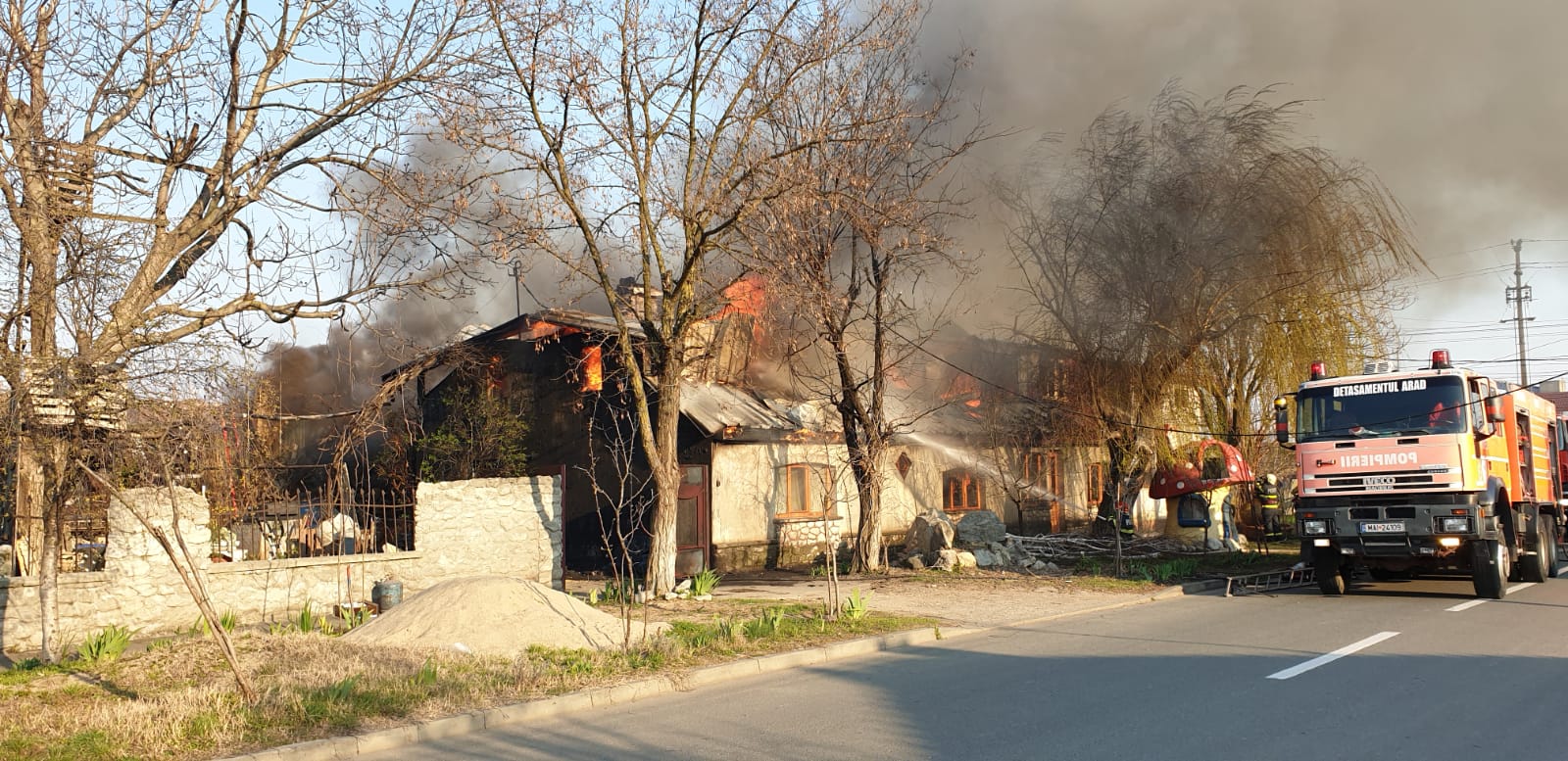 UPDATE: Reprezentanții Inspectoratului pentru Situații de Urgență (ISU) Arad au precizat că la incendiu se intervine cu toată tehnica Detașamentului de Pompieri Arad. Potrivit ISU Arad, incendiul se manifestă violent și generalizat la întreaga construcție – de aproximativ 300 de metri pătrați -, cu posibilitatea de propagare la alte patru case.