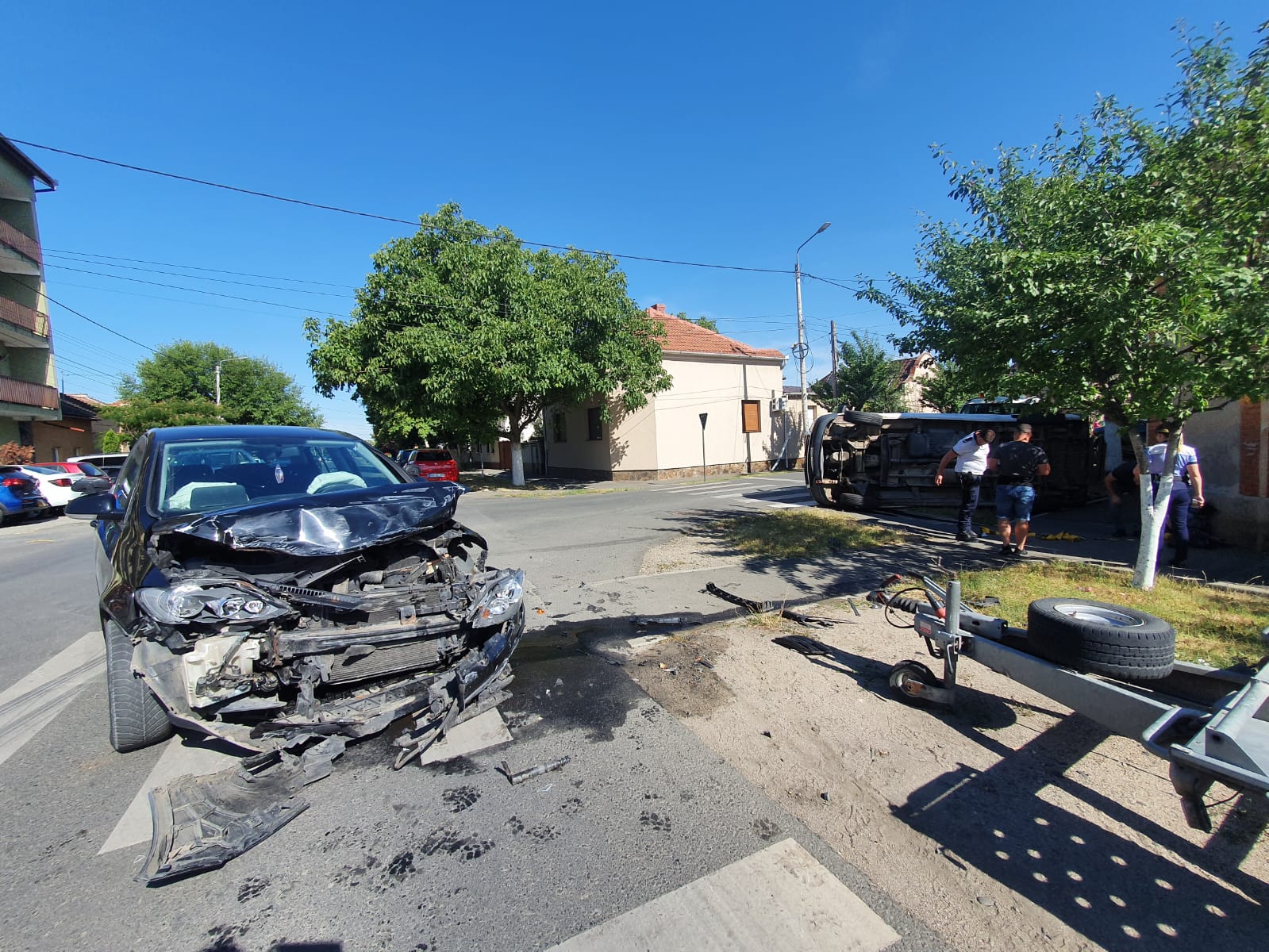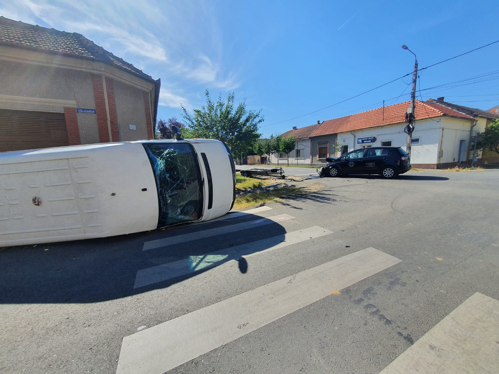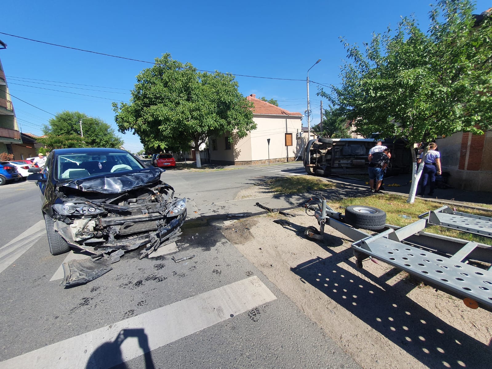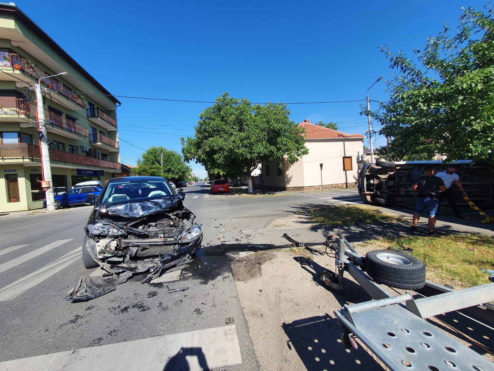 ARAD. Potrivit primelor informații primite de la fața locului, microbuzul nu ar fi acordat prioritate de trecere, intrând în coliziune cu autoturismul. În urma impactului, microbuzul s-a răsturnat pe o parte. O persoană a fost transportată la spital pentru evaluare, în urma evenimentului rutier.