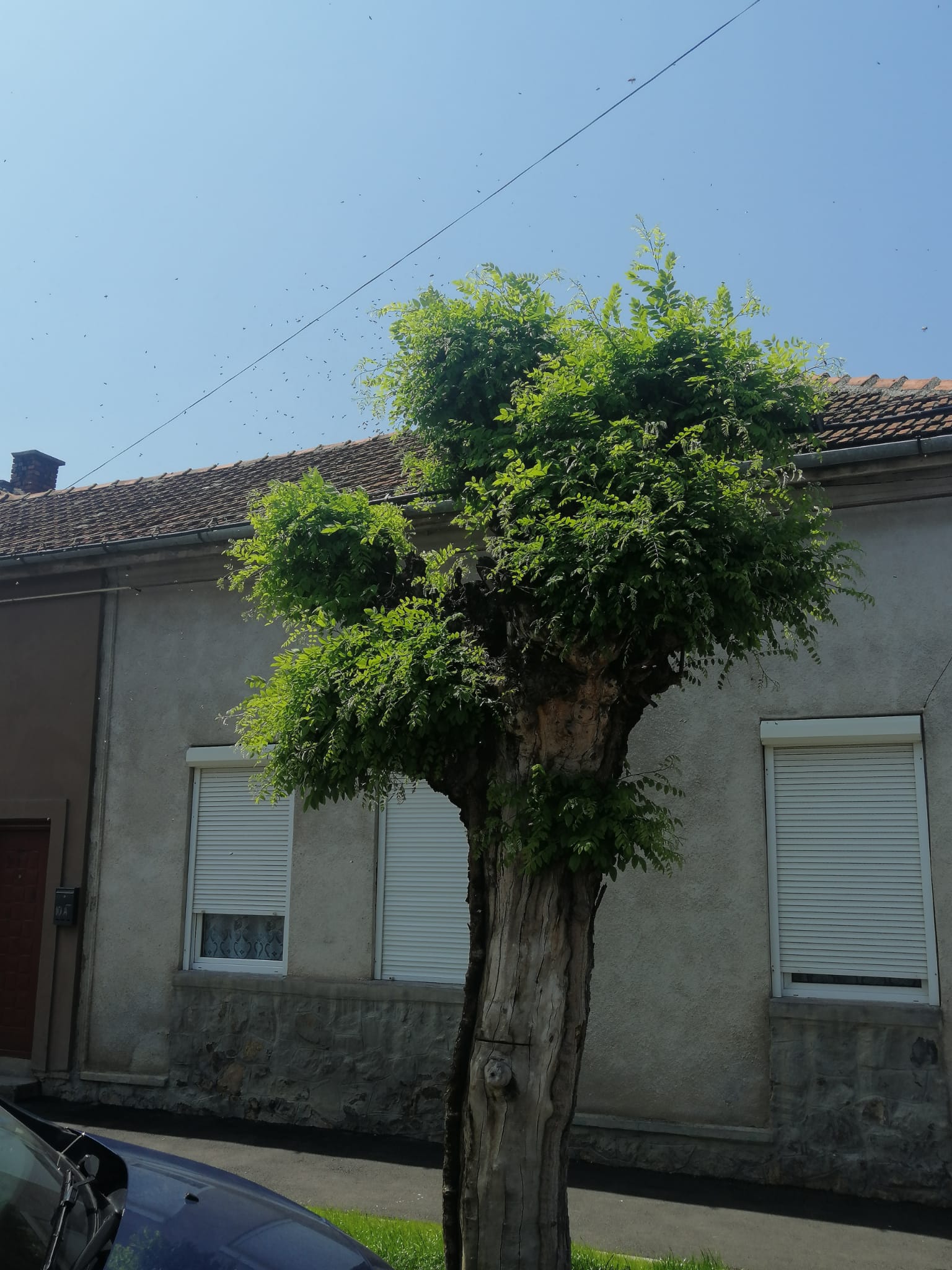 Albinele roiesc in perioada asta asa ca doar un apicultor știe ce are de făcut, nu corpul gardienilor publici.