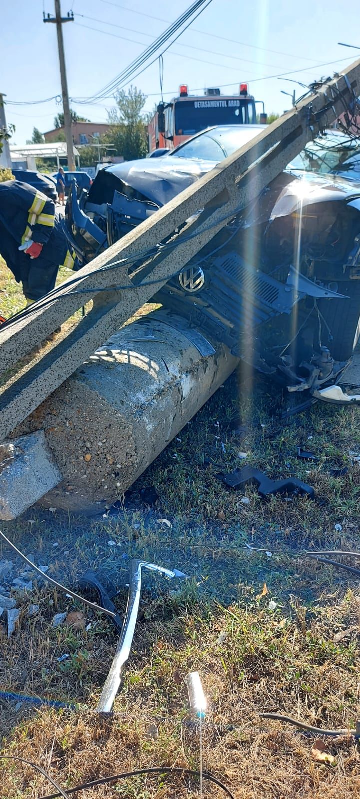ARAD. În autoturism se afla doar șoferul. Acesta a ieșit singur din mașină. Conducătorul auto a fost evaluat la fața locului de către un echipaj medical din cadrul Serviciului de Ambulanță Județean Arad, iar apoi l-au transportat la Spitalul Clinic Județean Arad.Despre intervenția pompierilor, reprezentanții ISU Arad spun că: „Detașamentul de Pompieri Arad intervine cu o autospecială pentru asigurarea măsurilor PSI – stâlp căzut pe autoturism – în urma unui accident rutier din municipiul Arad, strada Poetului, în care a fost implicat un autoturism”.