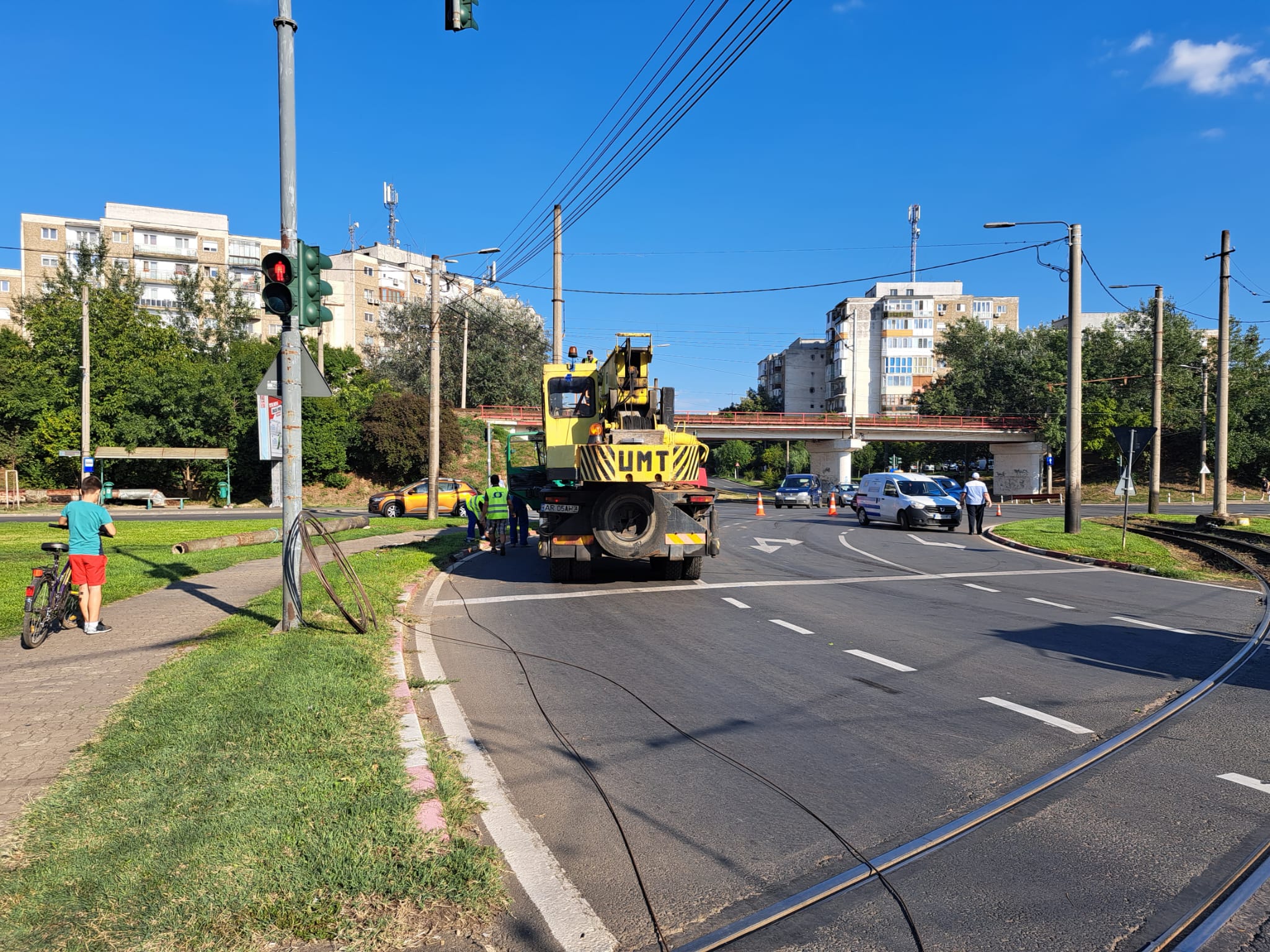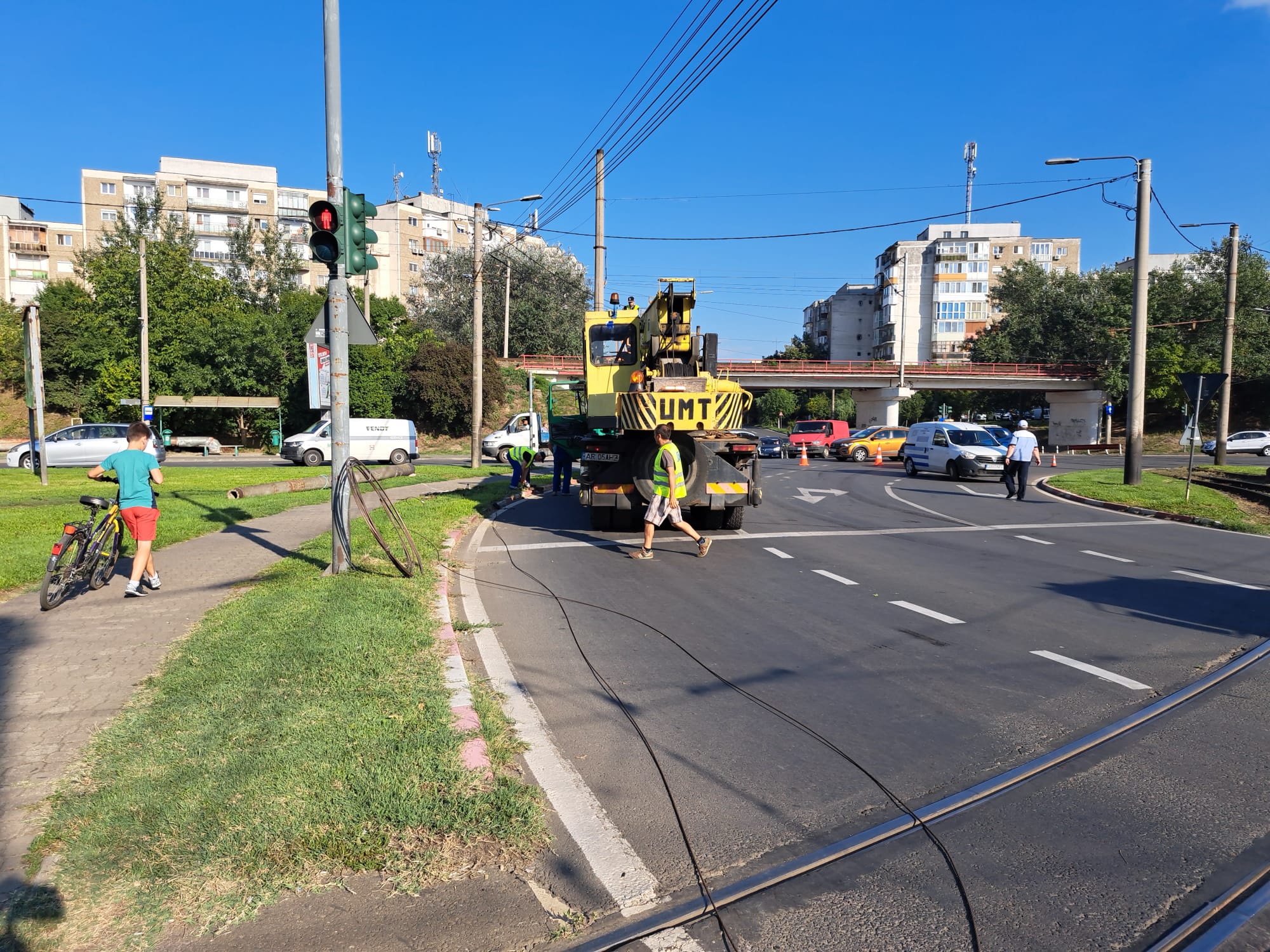 Primăria Municipiului Arad și Compania de Transport Public anunță că circulația tramvaielor în cartierul Micălaca, zonele II și III, este momentan suspendată, pe ambele sensuri de mers, în urma producerii unui incident de către șoferul unui transport agabaritic militar, care a agățat și rupt rețeaua electrică și a pus la pământ unul dintre stâlpii de susținere a acesteia, în sensul giratoriu de pe Bulveradul Nicolae Titulescu.“Echipele CTP Arad intervin deja la fața locului pentru remedierea cât mai rapidă a situației.Între timp pe traseul Podgoria – Polivalentă – Billa- Voinicilor -Calul Bălan – Podgoria, tramvaiele vor fi înlocuite de autobuze care vor respecta orarul acestora și vor opri în vecinătatea stațiilor de tramvai de pe traseu. Circulația tramvaielor spre localitățile Vladimirescu și Ghioroc nu este afectată. Ca urmare a acestui incident, atragem atenția șoferilor, ca în măsura posibilităților, să evite zona sensului giratoriu din Micălaca (zona Billa) pentru a preîntâmpina situații nedorite”, informează municipalitatea.