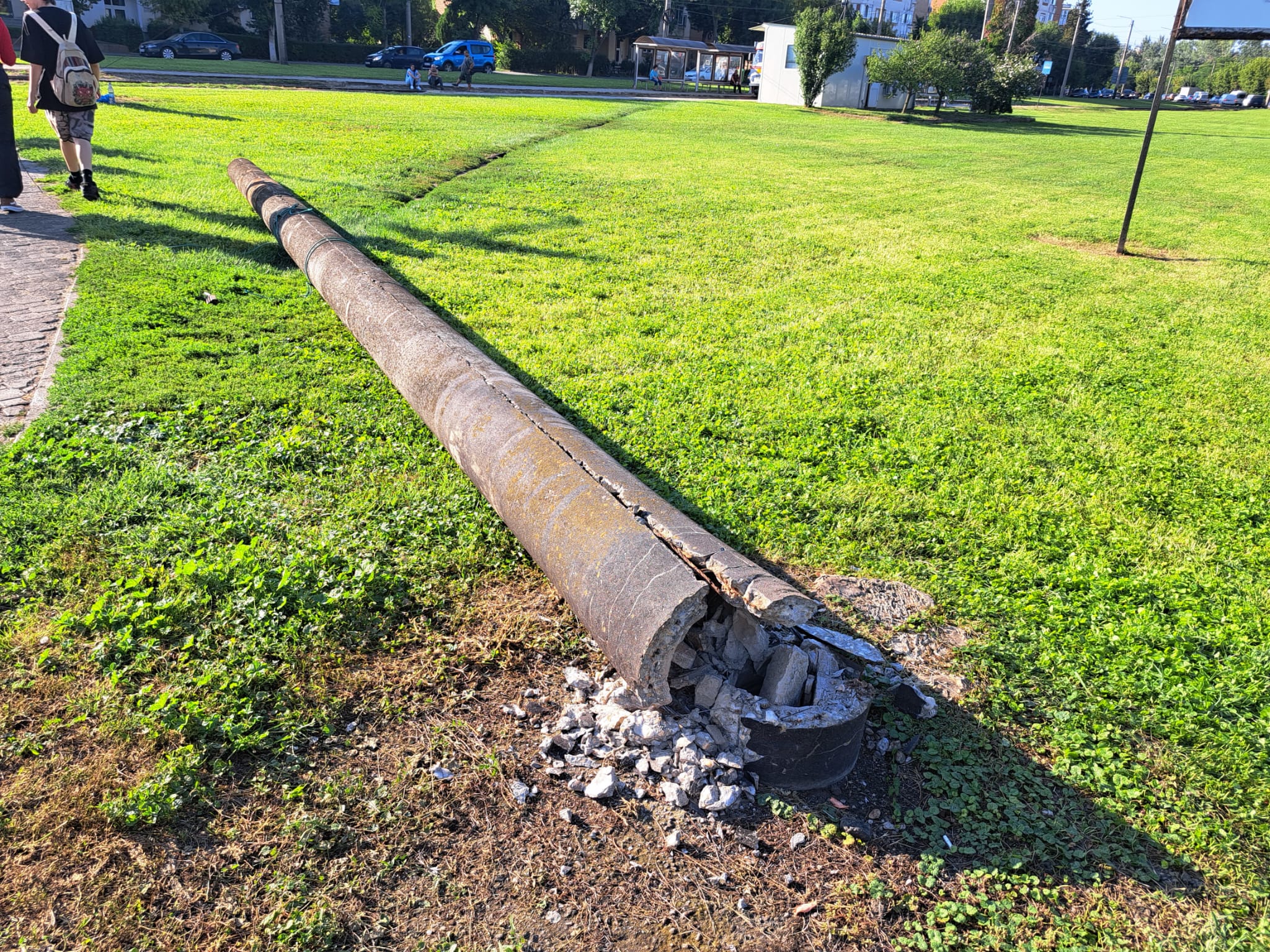Noroc că nu a picat stâlpul pe cei care eram pe alee, mai ales cele 2 doamne care erau la trecerea de pietoni, era cat pe ce🙏!!!