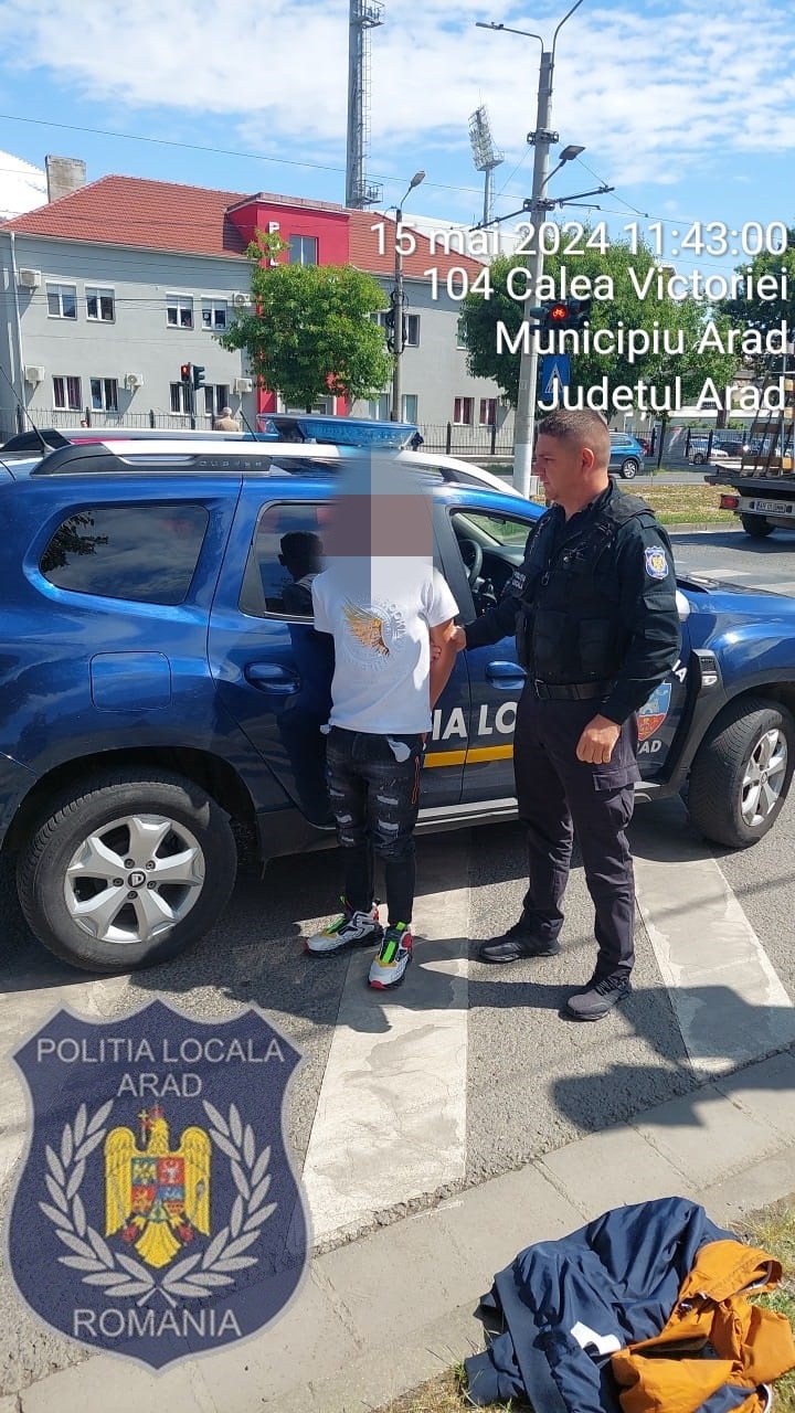 ”În jurul orei 11:20, imediat după semnalarea faptei de tâlhărie prin Dispeceratul Poliției Locale, respectiv solicitarea acordării de sprijin, de către Poliția Națională, polițiștii locali s-au mobilizat în teren, în vederea căutării individului. După aproximativ 20 de minute, C.I., în vârstă de 19 ani, domiciliat într-o localitate din județul Arad, a fost identificat de patrula Poliției Locale, pe Calea Aurel Vlaicu, după semnalmentele transmise de Poliția Națională și predat Secției 2 Vlaicu, în vederea cercetărilor pentru infracțiunea de tâlhărie. Menționăm că obiectul furat a fost recuperat după prinderea individului.