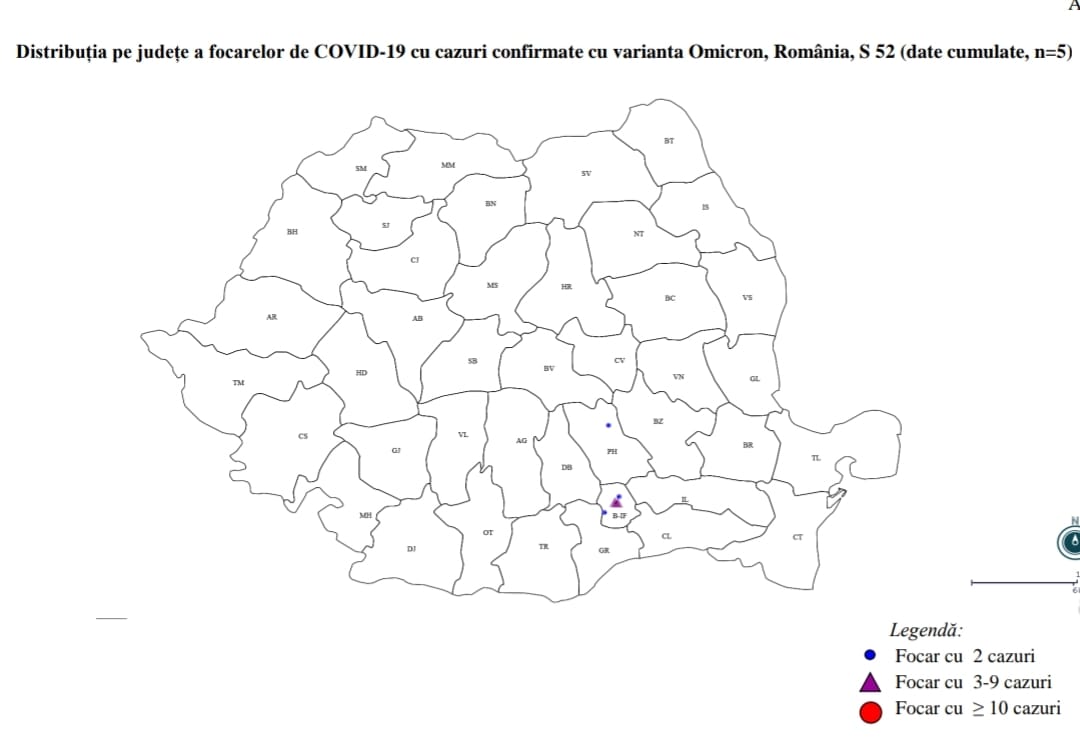 Conform raportului INSP, în acest moment nu există evidențe de transmitere comunitară susținută, la nivel național, a variantei Omicron.