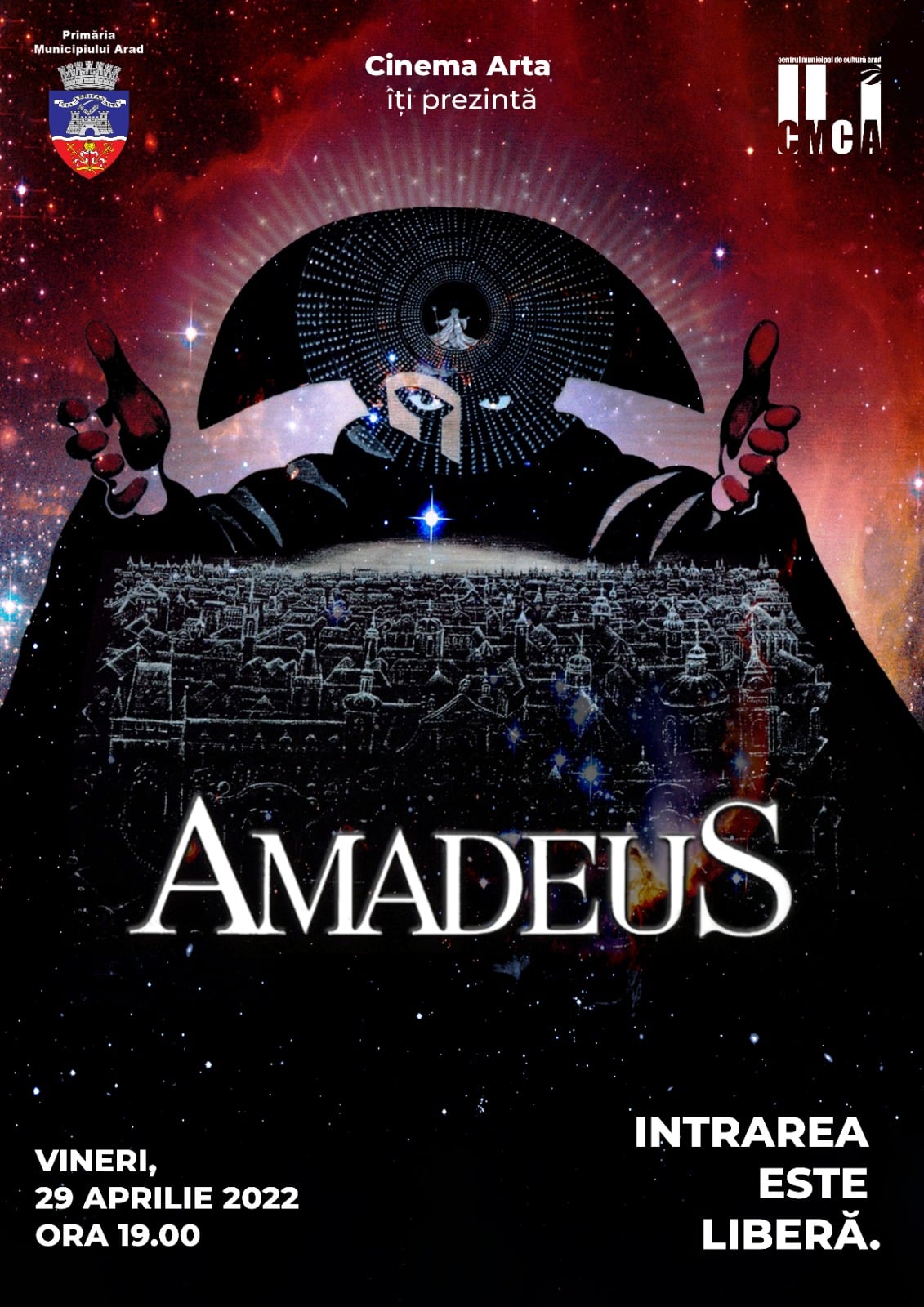ARAD. Considerat un triumf cinematografic între cele mai bune 100 de filme din lume (conform catalogului Institutului American de Cinematografie), filmul „Amadeus” va fi proiectat, vineri, 29 aprilie 2022, de la ora 19, la cinematograful Arta din Arad. Cu această proiecție-eveniment va fi reluat programul „Cinemateca”, dedicat patrimoniului cinematografic național și internațional. Intrarea la film este liberă.