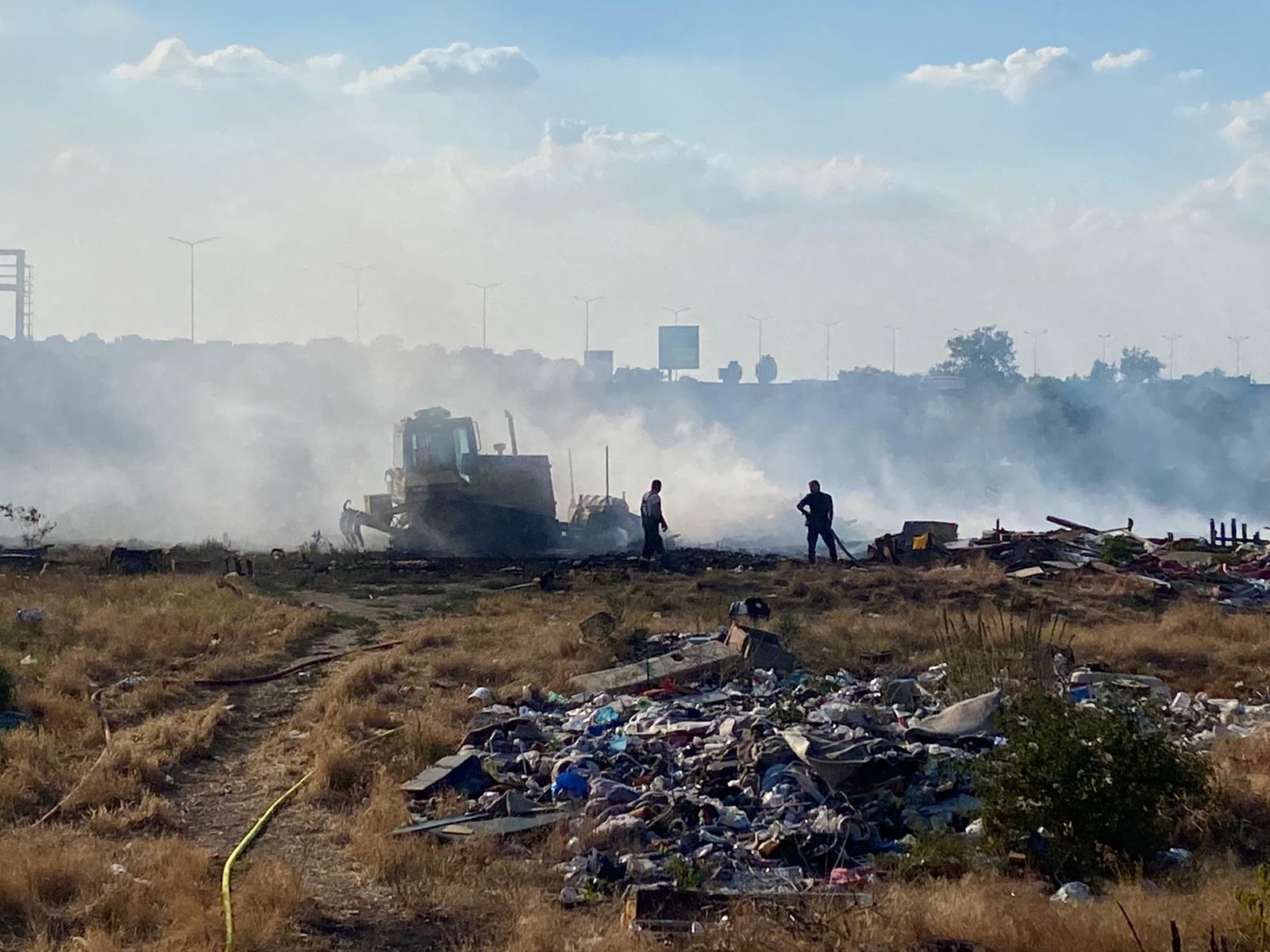 În urma incendiului au ars 1,5 hectare de vegetație uscată, deșeuri menajere și mase plastice.