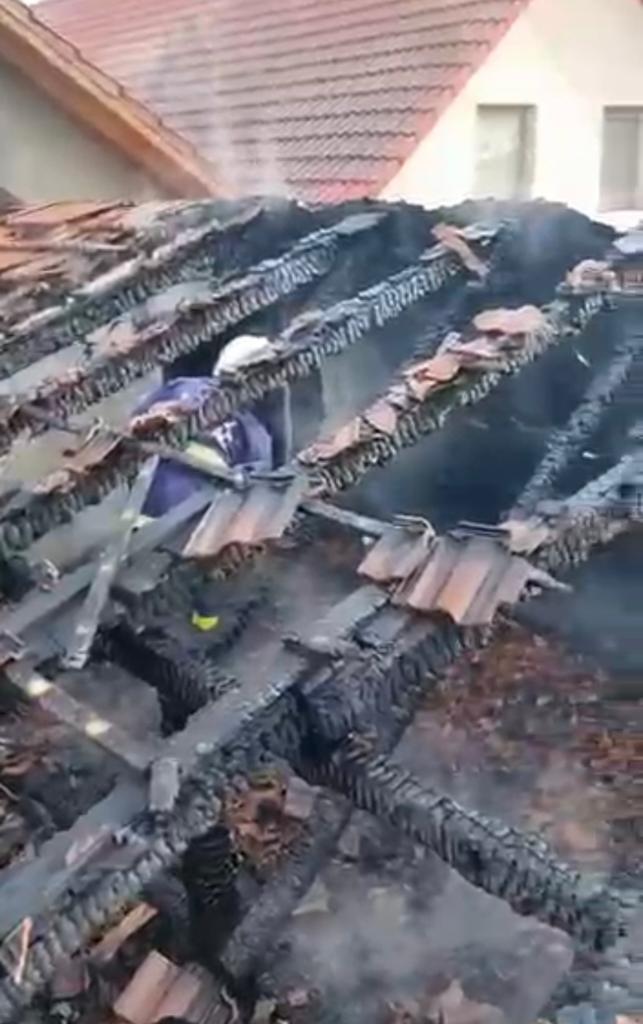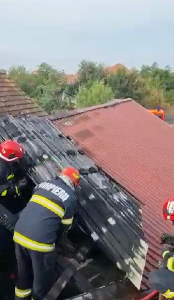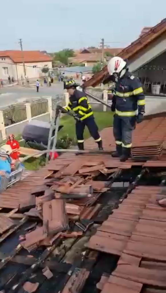 NĂDLAC. Pentru lichidarea incendiului intervin forțe și mijloace ale Detașamentului de Pompieri Arad o autospecială de stingere cu apă și spumă și un echipaj SMURD. De asemenea, Serviciul Voluntar pentru Situații de Urgență Nădlac a venit în sprijin cu două autospeciale de stingere.“Incendiul se manifestă la terasa acoperită a imobilului. În acest moment, incendiul este localizat, iar riscul de propagare la casă este eliminat. Se acționează pentru stingere”, au transmis reprezentanții Inspectoratului pentru Situații de Urgență Arad.