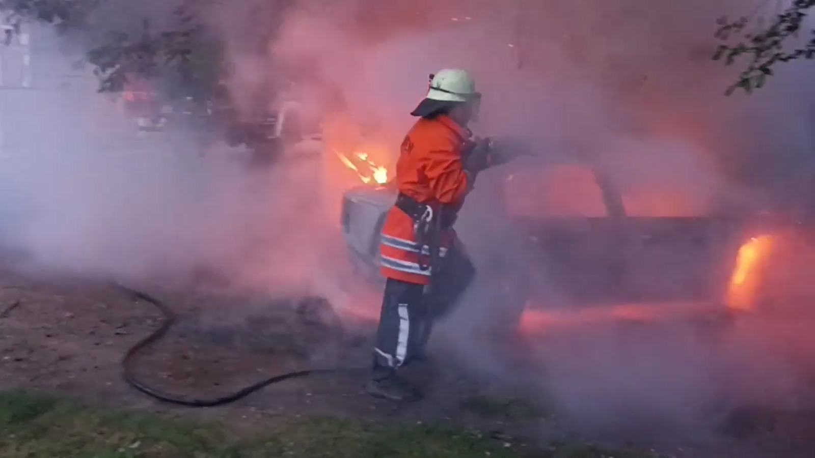 VIDEO. Mașină mistuită de flăcări, la Sântana