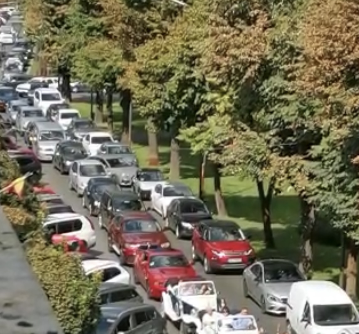 ARAD. Fără nici cel mai mic respect pentru arădenii care se aflau în trafic, fără a ţine cont de normele sociale – pe care restul arădenilor, sau majoritatea, le respectă – nuntaşii au coborât relaxaţi din maşini, pe care le-au lăsat pe banda a doua de circulaţie, şi s-au îndreptat înspre căleştile oprite pe prima bandă de circulaţie, în care se afla mireasa, mirele şi alţii, pentru a-i filma. Haosul a domnit preţ de câteva minute şi s-a întins pe sensul de mers Podgoria spre Primărie, alaiul fiind oprit după intersecţia cu strada Cloşca. La un moment dat a apărut şi un echipaj al Poliţiei Locale. Nu pentru a-i amenda pe petrecăreţi pentru că au blocat ambele sensuri de mers pentru că nunta a trebuit transmisă pe Tik Tok sau Instagram, ci pentru a escorta alaiul care, din informaţiile noastre, a ajuns până pe strada Andrei Şaguna.