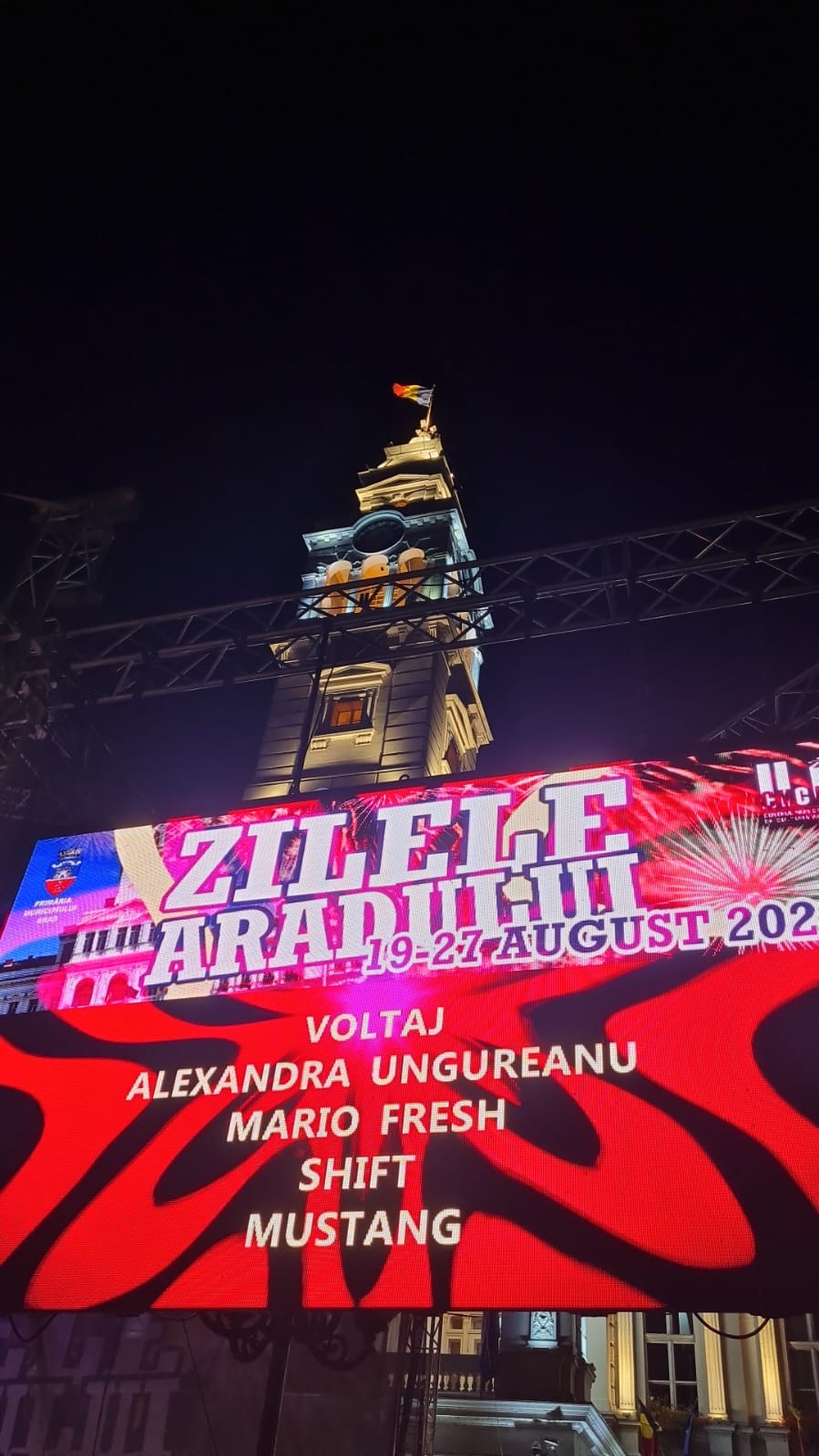 Pe lângă concerte, pe scenă urcând Mustang, Shift, Mario Fresh, Alexandra Ungureanu și Voltaj, arădenii au avut parte și de un spectacol de lumini.