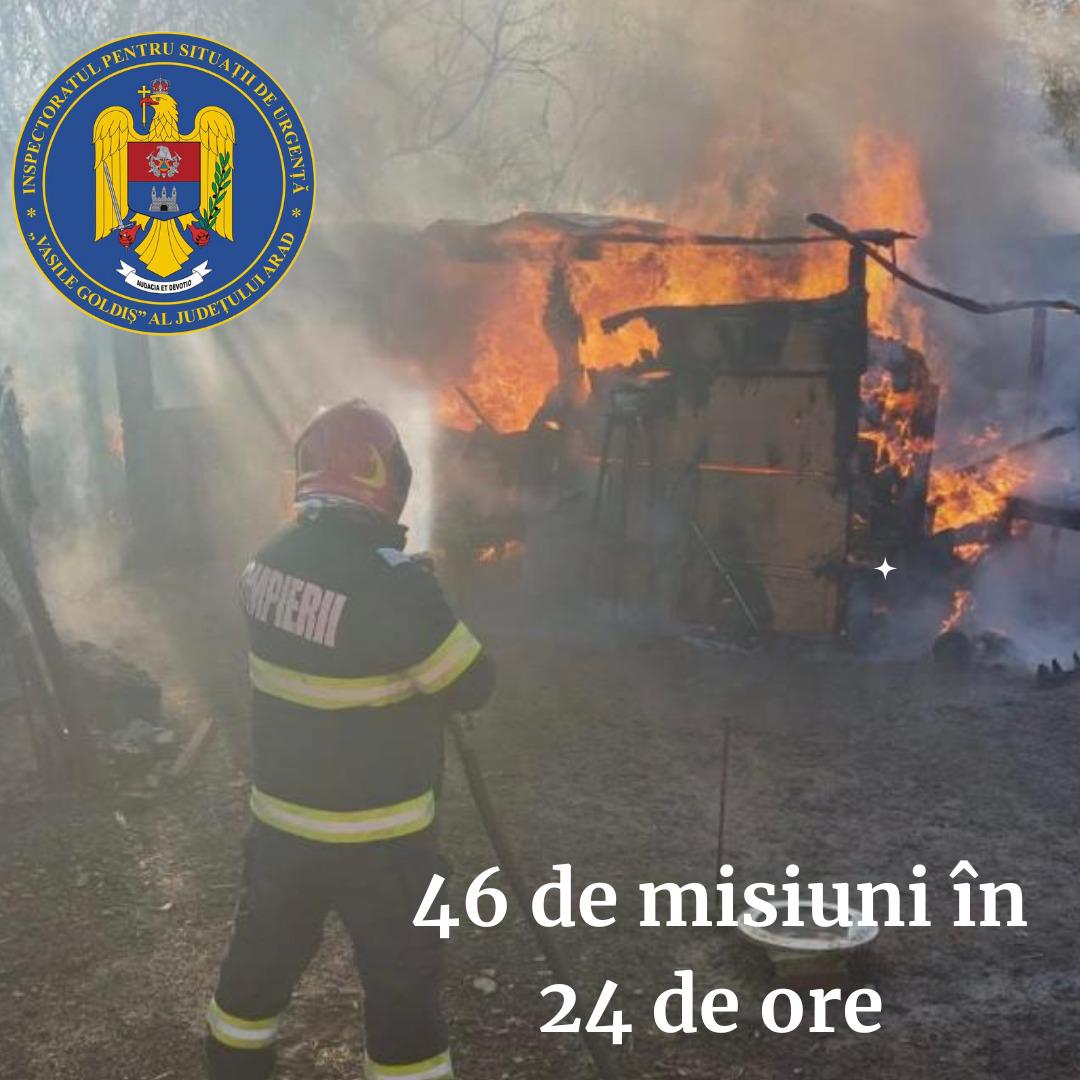 Arad. În ultimele 24 de ore, echipajele de pompieri din cadrul Inspectoratului pentru Situații de Urgență „Vasile Goldiș” al județului Arad a intervenit la 46 de solicitări venite prin numărul de urgență 112. Majoritatea dintre acestea au constat în asistență medicală, echipajele SMURD acționând în cazul a 41 de solicitări.