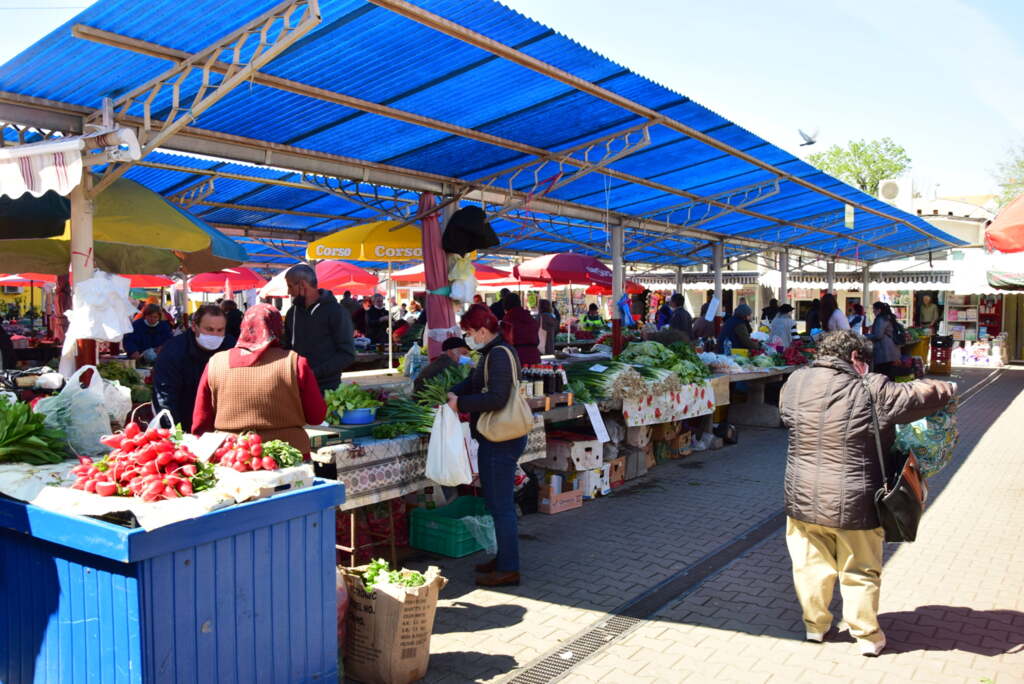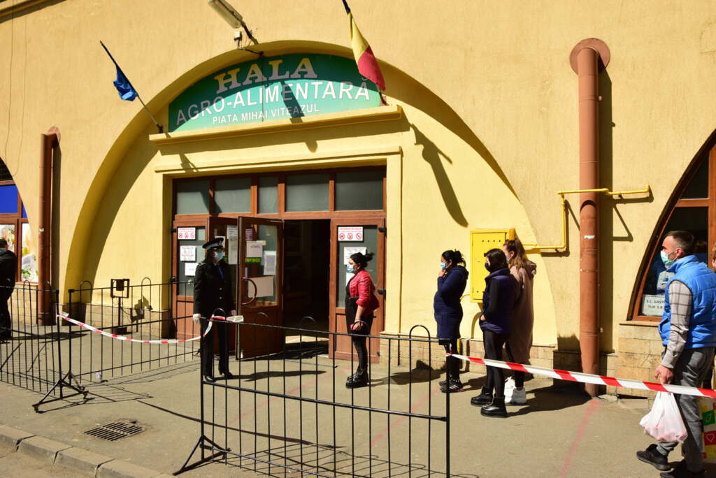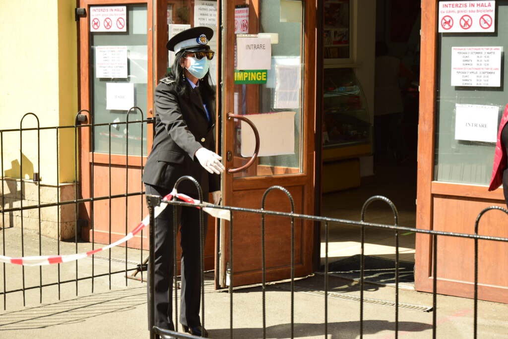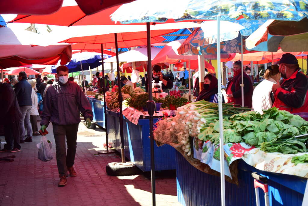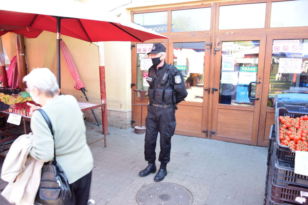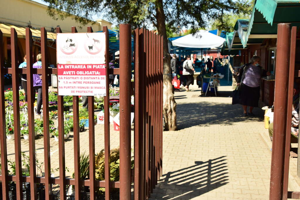 La toate intrările în piață au fost montate plăcuțe pe care scrie: „La intrarea în piață aveți obligația: să păstrați o distanță de 1,5 metri între persoane, să purtați mănuși și mască de protecție”.