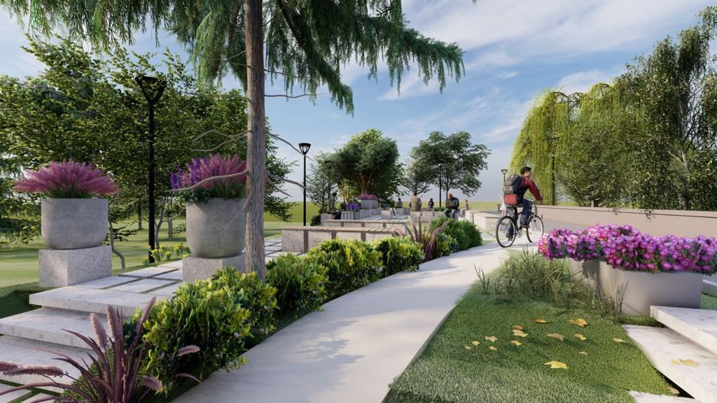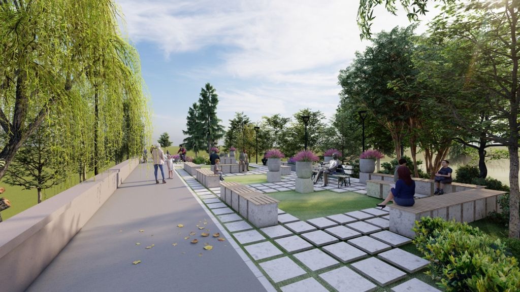 Zona vizată de noul proiect se află tot pe malul Mureşului, destul de aproape de esplanada modernizată. E vorba de spaţiul verde din colţul Tribunalului, spre mal – un loc ce arată cam neîngrijit în prezent, cu alei denivelate, jardiniere deteriorate, „băncuţe” înclinate şi vegetaţie care pare că ar avea nevoie de intervenţia unor specialişti.