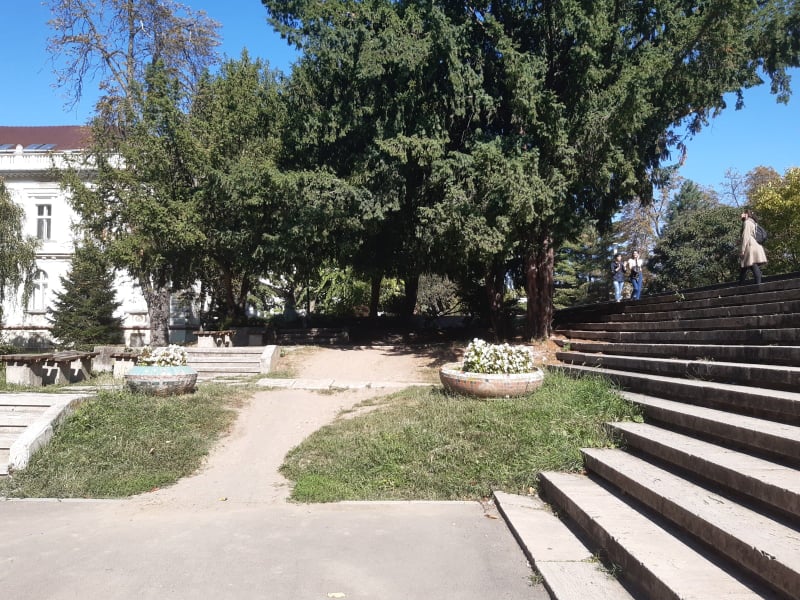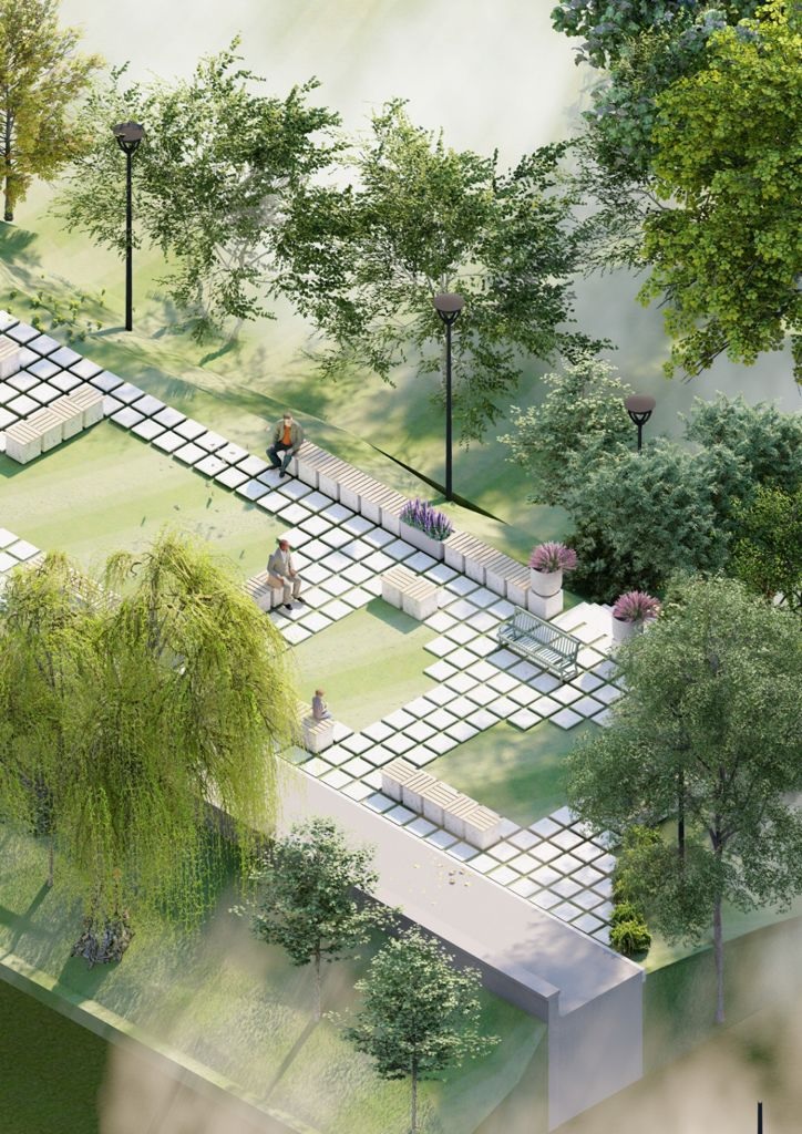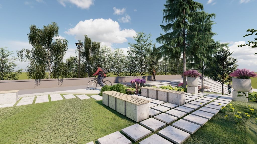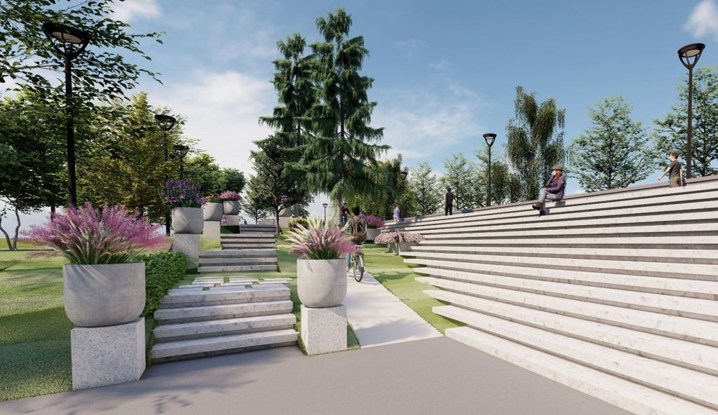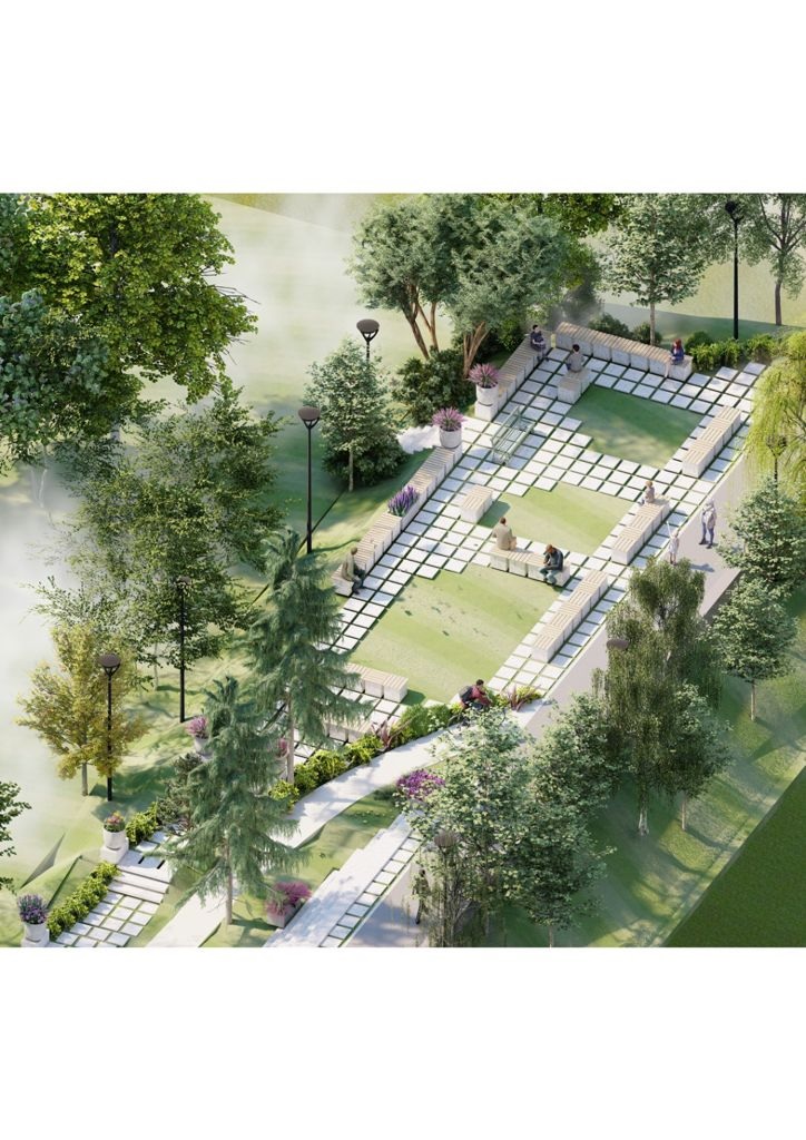 Fără a face schimbări majore în aspectul său, locul ar urma să fie amenajat discret, încercând recondiţionarea şi refolosirea plăcilor de mozaic ce formează aleile, realizarea unor bănci pe cuburi din beton (la fel ca cele câteva existente acum), înlocuirea ghivecelor şi jardinierelor, reîmprospătarea vegetaţiei şi, ca noutate, construcţia unei rampe pentru cărucioare şi biciclete.