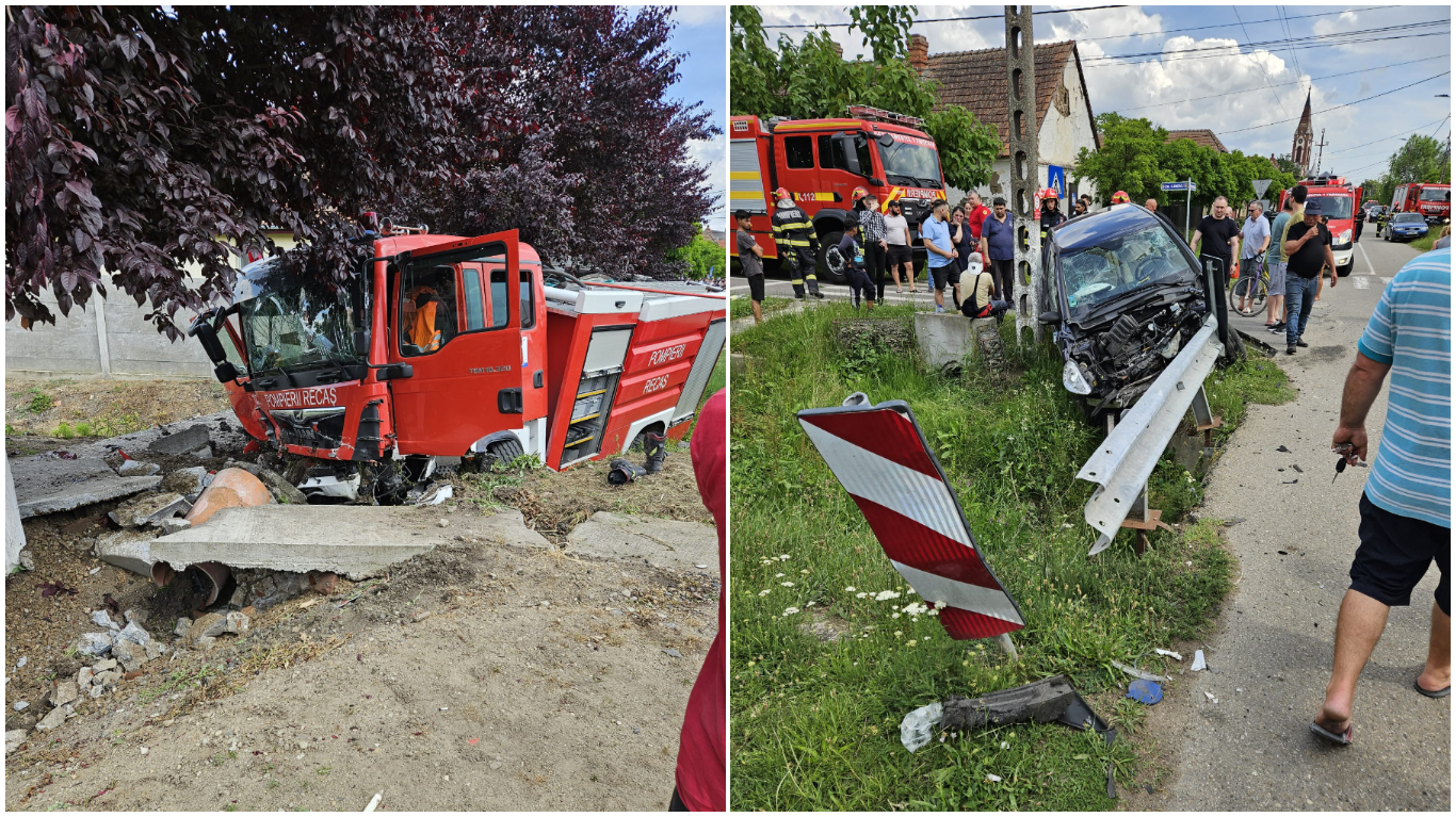 Accident cu șapte victime, sâmbătă după-masă, în Recaș. Au fost implicate un autoturism în care se afla doar șoferul și o autospecială a Serviciului Voluntar pentru Situații de Urgență din Recaș, care se deplasa la o intervenție. A fost alertat elicopterul SMURD CS, unul dintre răniți fiind transportat în stare gravă la spital.