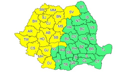 Administrația Națională de Meteorologie a emis o avertizare meteorologică de cod galben valabil de luni, 29 august, ora 12:00, până marți, 30 august, ora 10:00. În acest interval, în județele Arad, Satu Mare, Maramureş, Sălaj, Suceava, Bistriţa-Năsăud, Mureş, Argeş, Vâlcea, Dolj, Mehedinţi, Gorj, Sibiu, Alba, Cluj, Bihor, Timiş, Caraş Severin şi Hunedoara, vor fi averse torențiale, descărcări electrice, intensificări ale vântului și pe alocuri vijelii și grindină.