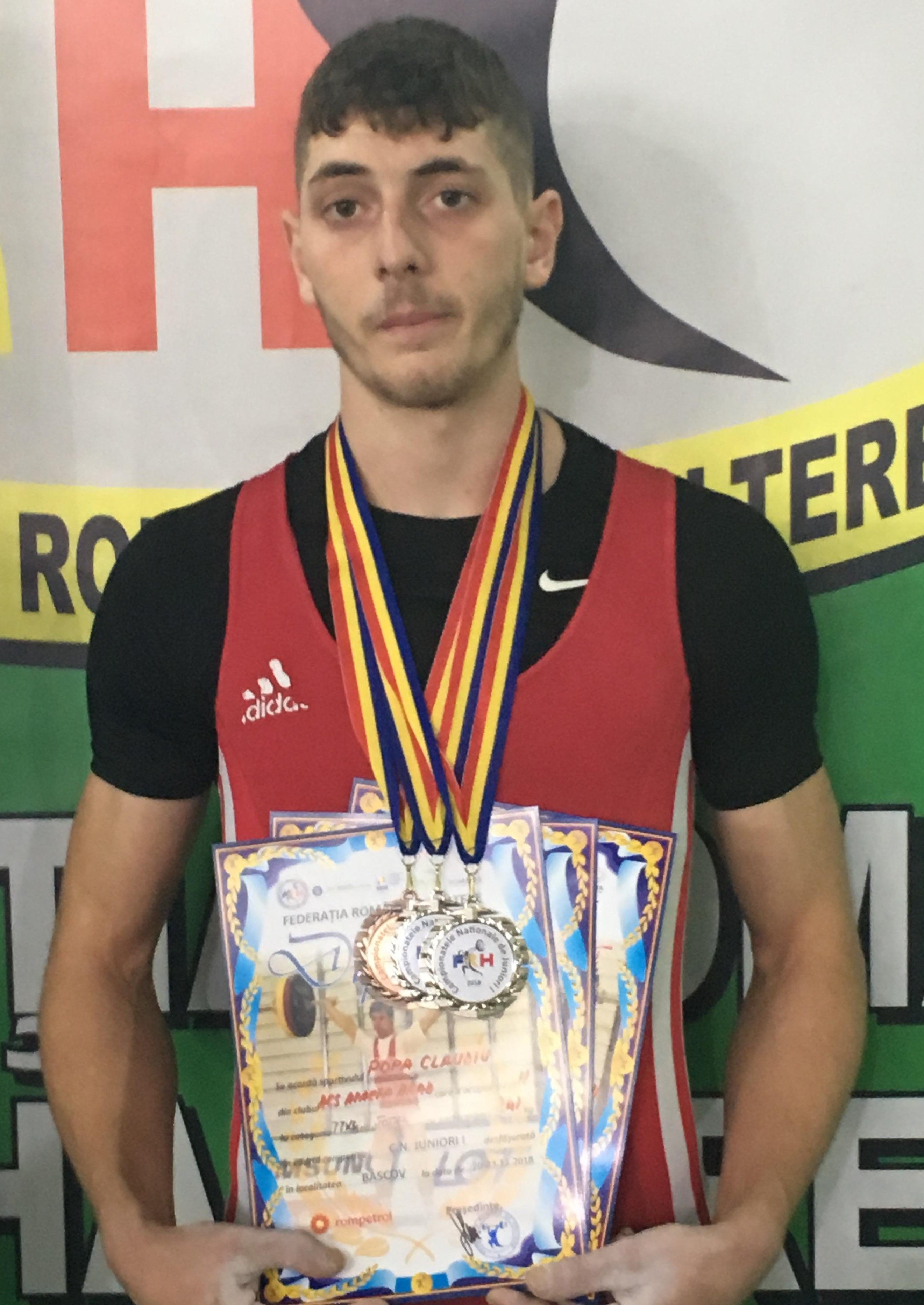 BASCOV. Campionatul Naţional de haltere rezervat juniorilor I (under 20) a adus o nouă medalie în vitrina cu trofee preţioase a Clubului Sportiv AMEFA Arad. Pregătit de antrenorul emerit Gheorghe Biriş, sportivul arădean Claudiu Popa (19 ani) a obţinut medalia de argint la stilul aruncat (135 kg) şi total (241 kg) şi pe cea de bronz, la procedeul smuls (106 kg) la categoria 77 kg.