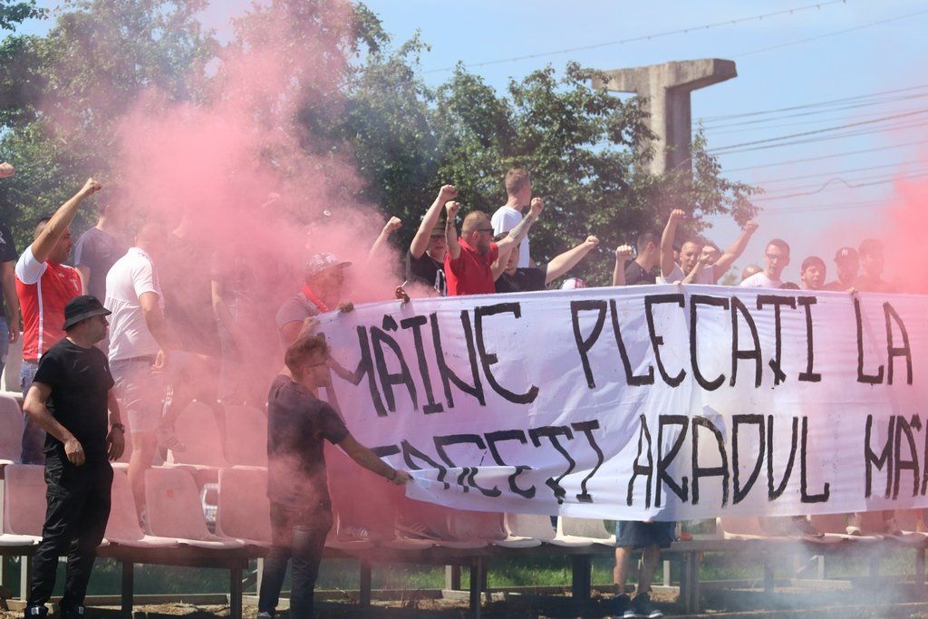 La antrenamentul de azi al echipei UTA, ultimul înaintea partidei de mâine cu Poli Timișoara, elevii lui Laurențiu Roșu au fost îmbărbătați de către suporteri. Aceştia au mers la terenul ICRTI şi - la finalul şedinței de pregătire - i-au chemat pe favoriți în faţa tribunei, acolo unde Roşu et comp. au ascultat scandări anti-Timişoara.