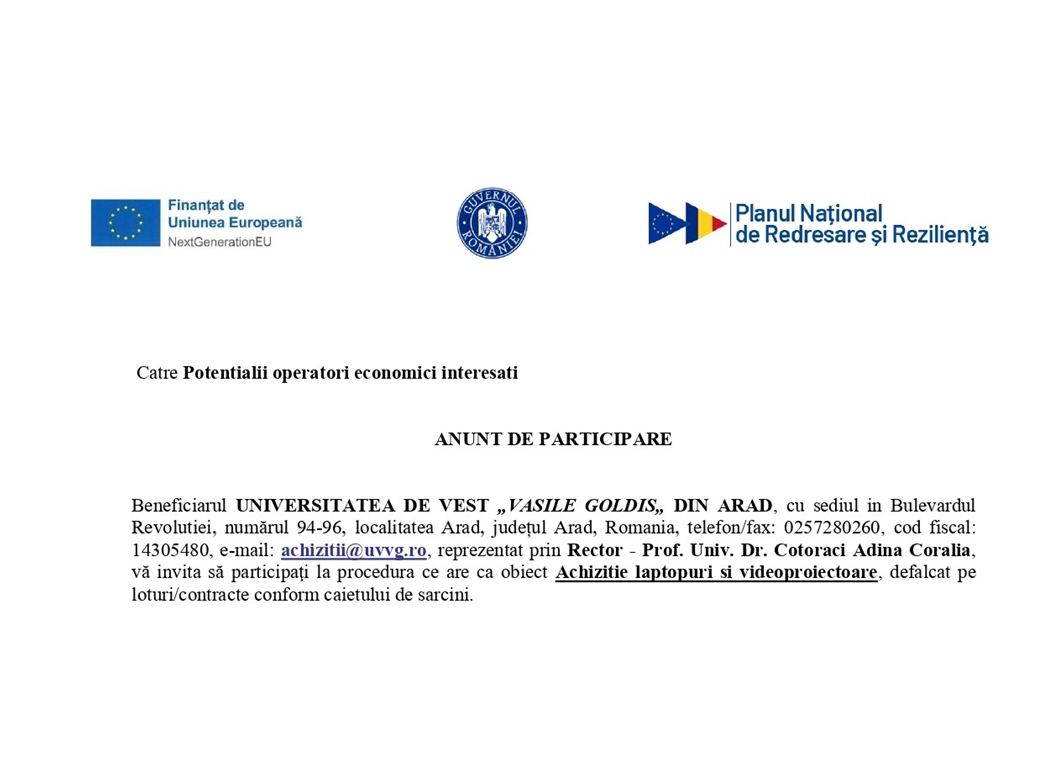 WERKLAND TOOLS S.R.L, cod de identificare fiscală 40584766, înregistrată la ONRC, cu nr. J2/316/2019, sediul în oraș Lipova, str. Lugojului, nr. 1D, județul Arad, România, reprezentată legal prin Dl. Korneker Bogdan-Adrian, vă invită să participaţi la procedura de atribuire Echipamente tehnologice 8 loturi.
