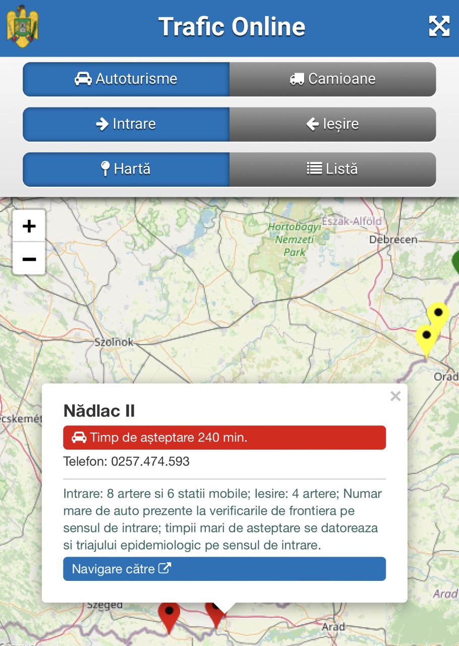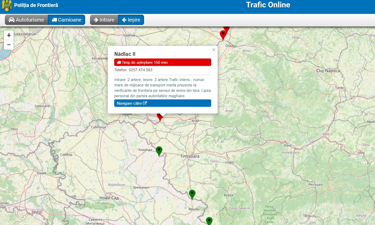 Câte 150 de minute se așteaptă, miercuri după masa, pe sensul de ieșire din țară, la Punctele de Trecere a Frontierei Nădlac II și Vărșand. La vama Nădlac I, timpul de așteptare este de 60 de minute. De vină pentru aglomerația de la vamă ar fi, potrivit aplicației Trafic Online a Poliției de Frontieră, autoritățile maghiare.