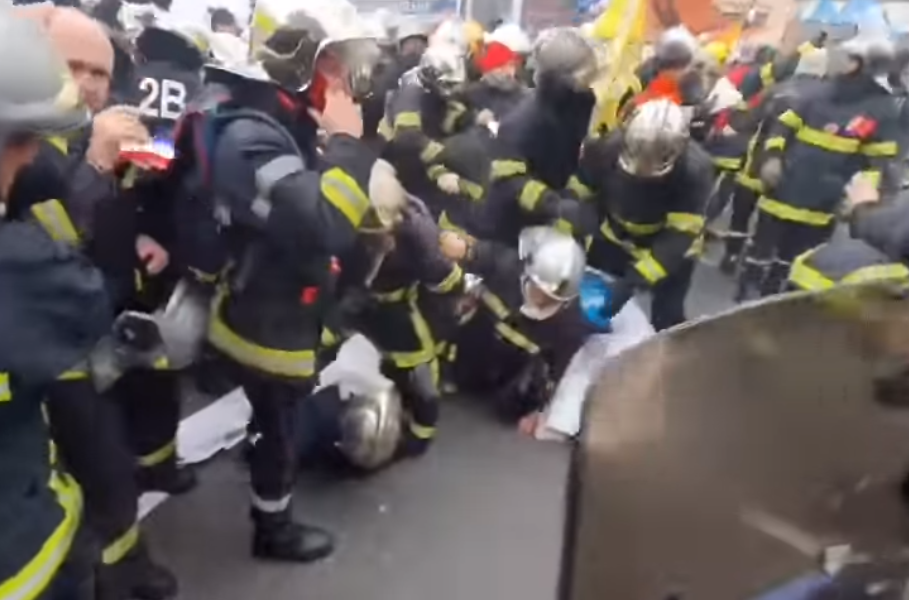 Șase minute și peste 50 de lovituri primite! Asta poate fi văzut pe imaginile făcute publice, joi seara, de televiziunea Antena 3, în direct. Protagoniștii: mai mulți indivizi, agenți de pază pe ale căror haine este inscripționat, așa cum se poate observa în imagini, numele unei firme de pază.