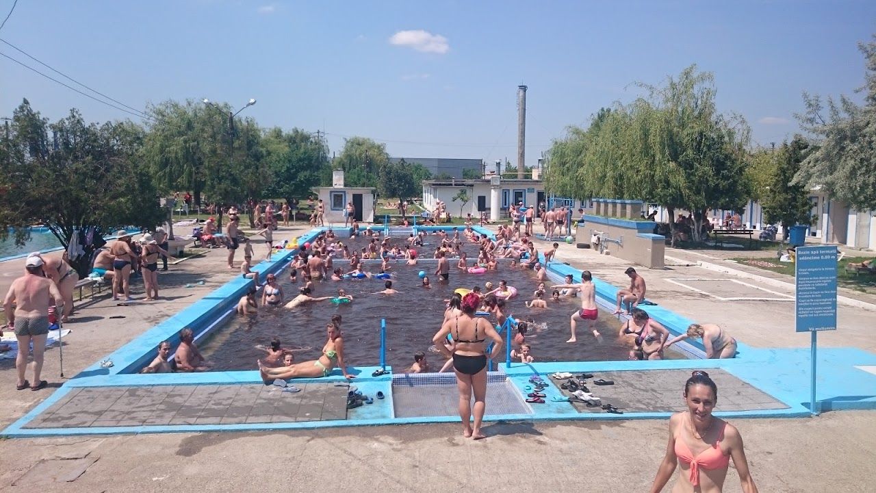 Tineri voluntari ai filialei judeţene de Cruce Roşie vro face pe salvamarii pentru pensionarii de la Băile „Bidi”, aparţinând Casei de Ajutor Reciproc a Pensionarilor Arad.