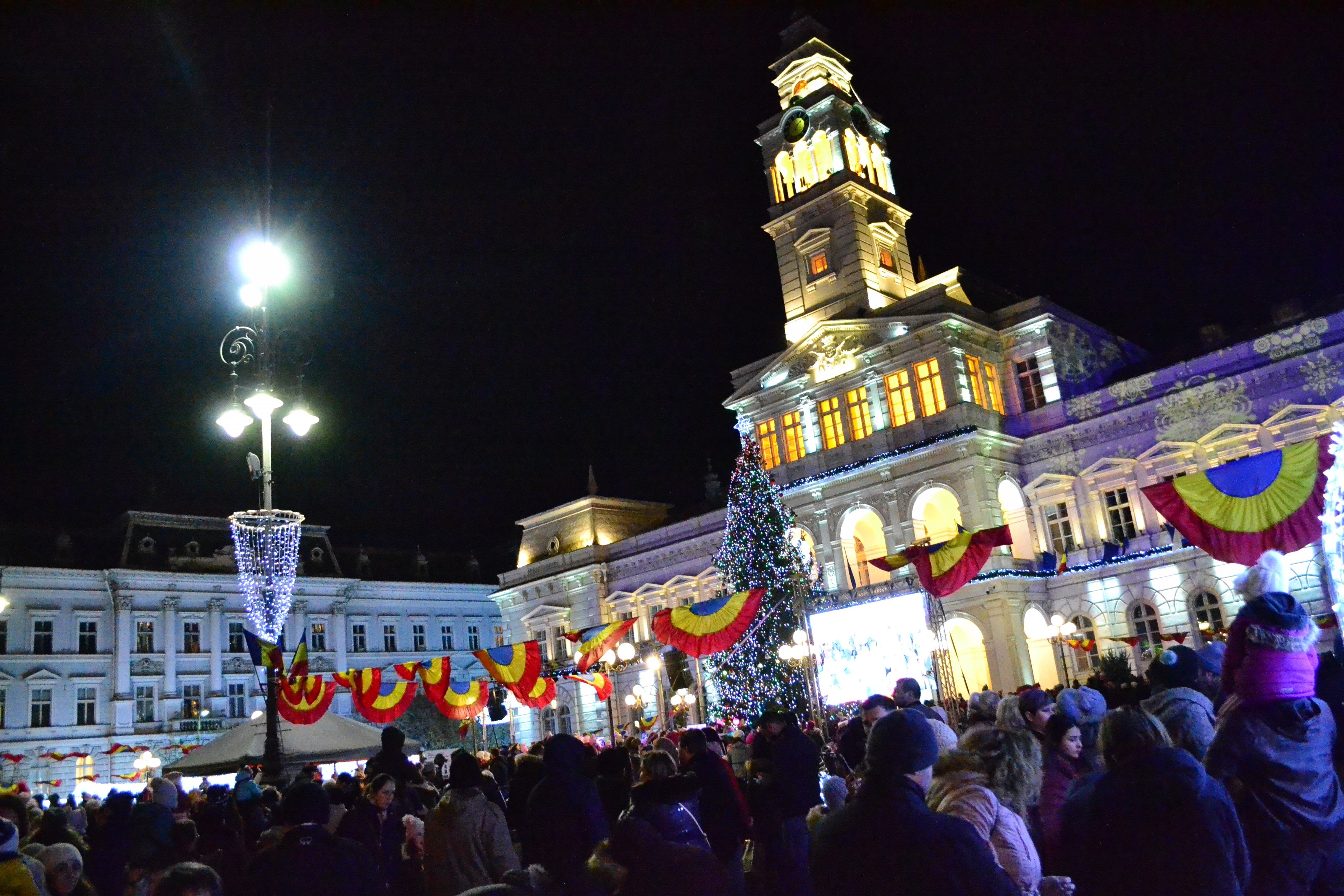 Într-o atmosferă parcă desprinsă din basmele pentru copii, luminițele ce împodobesc bradul din fața Palatului Administrativ au fost aprinse, în ajun de Moș Nicolae. Impozantul pom de iarnă, de peste 20 de metri, a fost adus din Munții Apuseni și a fost împodobit în ultimele câteva zile cu zeci de mii de luminițe și globuri.