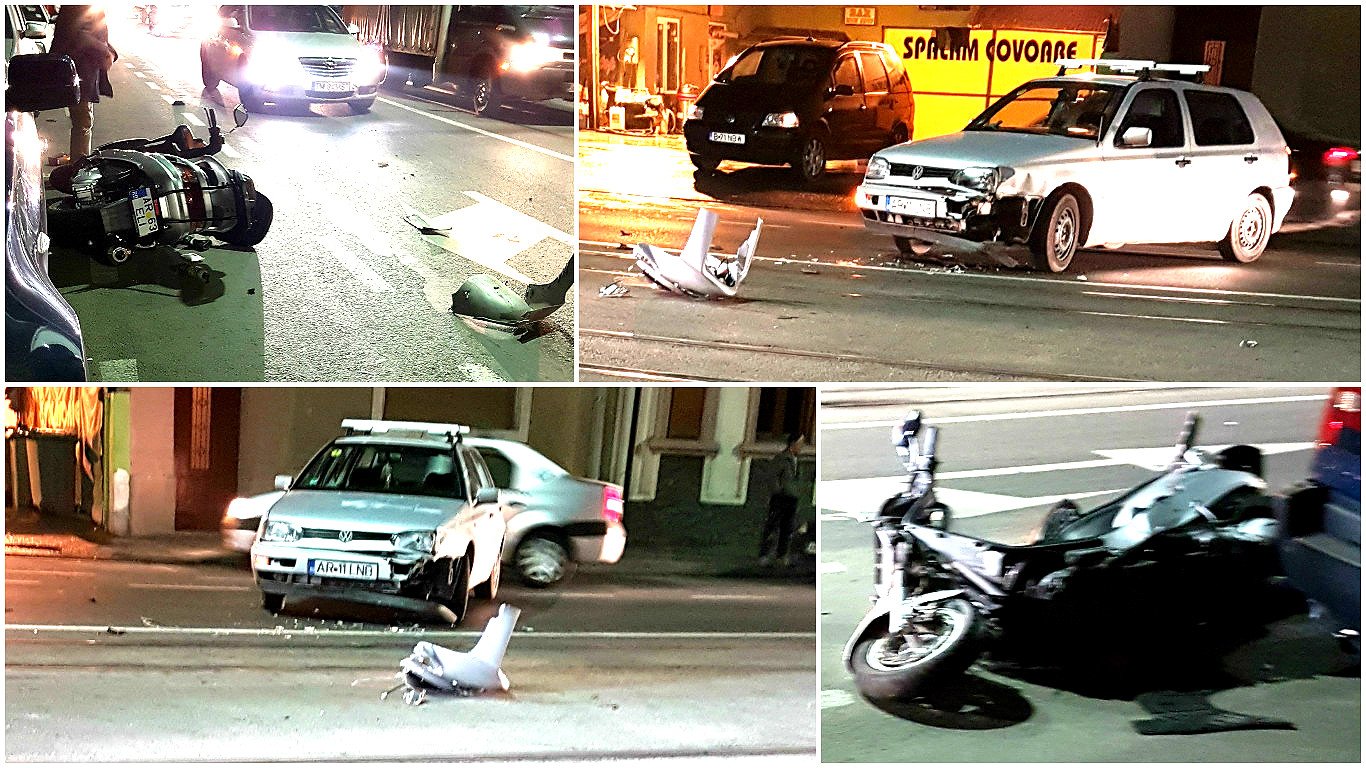 Un grav accident de circulație a avut loc vineri seara pe Calea Romanilor, pe sensul de mers înspre podul Traian, în apropierea unei spălătorii auto. O femeie care se afla pe o motocicletă a fost lovită de un autoturism. În urma impactului puternic, femeia a fost aruncată câțiva metri, la fel și motocicleta - spun locuitorii din zonă care au văzut accidentul și care ne-au trimis și câteva fotografii de la locul faptei - până pe sensul celălalt de mers unde a intrat într-o mașină care circula regulamentar înspre Piața Arenei. În urma acestui impact victima și motocicleta s-au izbit de o mașină parcată. Femeia a scăpat, ca prin minune, doar cu răni ușoare.