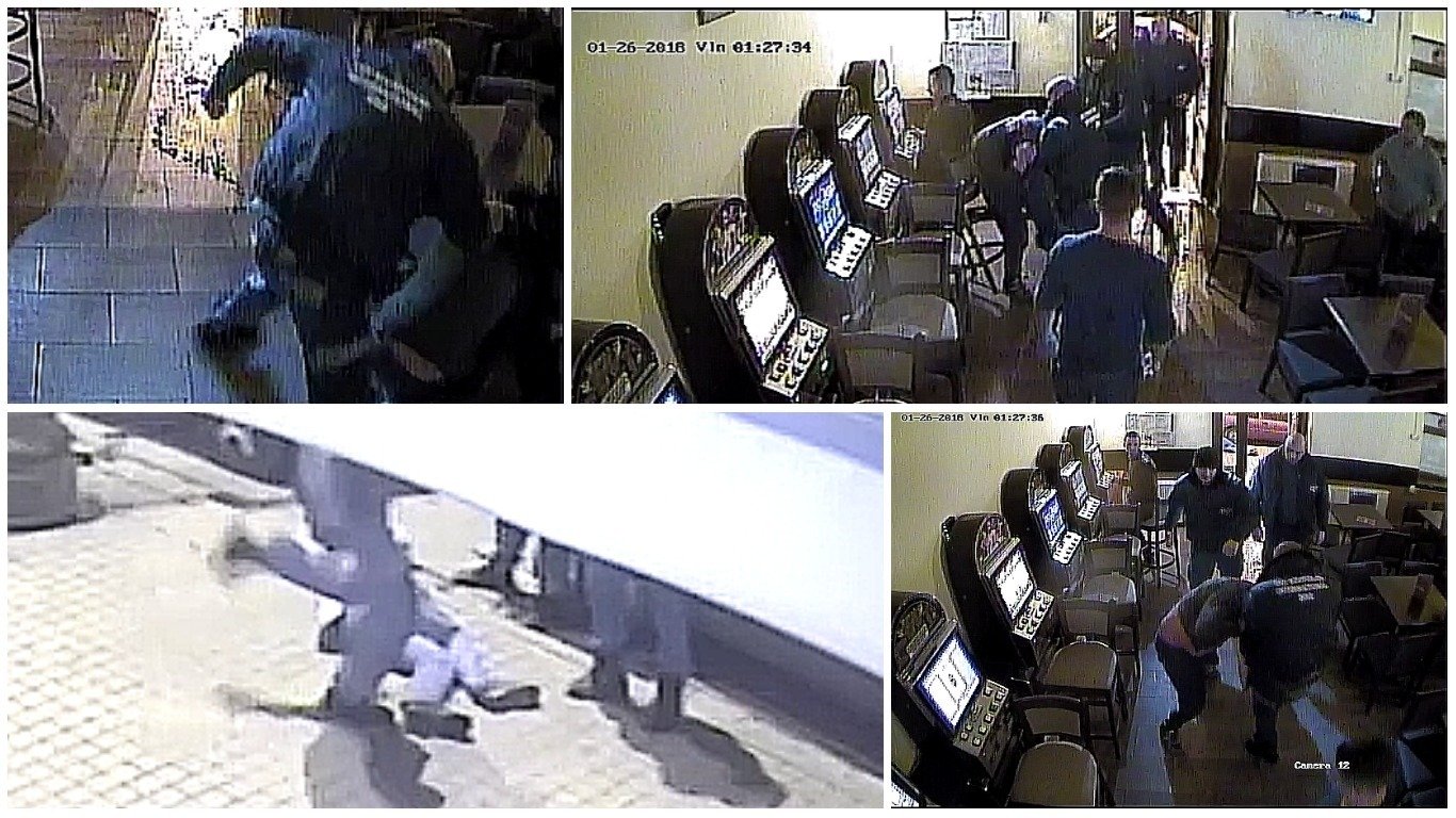 Camerele de supraveghere montate în incinta localului au surprins bătaia din 26 ianuarie 2018, în urma căreia doi dintre agenții de pază ai unei firme din Arad sunt cercetați penal. Imaginile arată cum trei agenți de pază lovesc, pe rând, un bărbat căzut în genunchi, în local, în timp ce camerele de supraveghere montate în exteriorul barului arată un bărbat culcat pe trotuar care este lovit cu picioarele de doi indivizi.