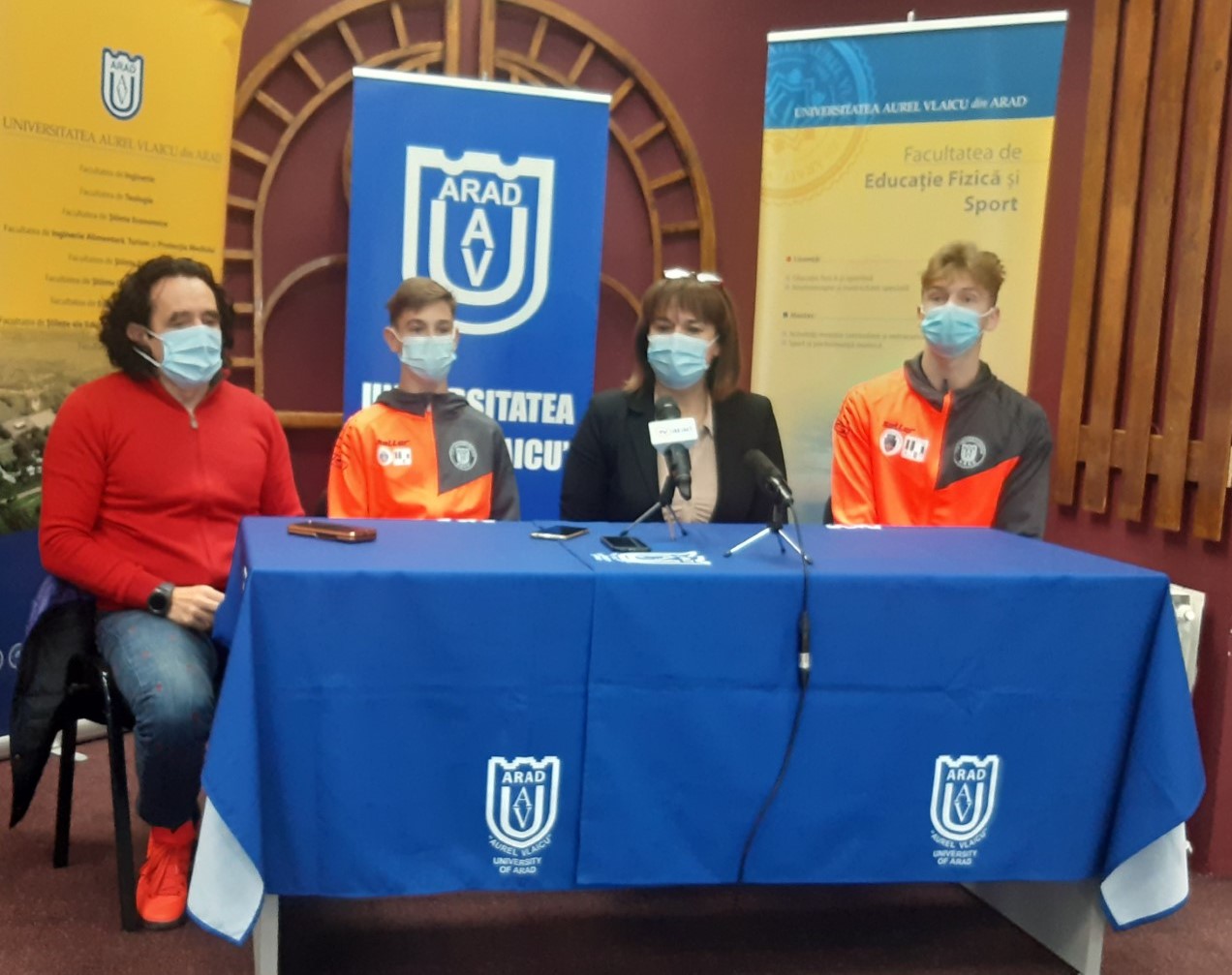 PESARO. Şcoala arădeană de gimnastică aerobică, „marca CS Universitatea Aurel Vlaicu” şi-a (re)confirmat valoarea la Campionatul European de juniori din Italia. Însoţiţi de prof. Ramona Haidu, în dublă calitate – antrenor şi arbitru internaţional – cei doi sportivi arădeni au contribuit la zestrea de medalii tricoloră, urcând de cinci ori pe podiumul de premiere.