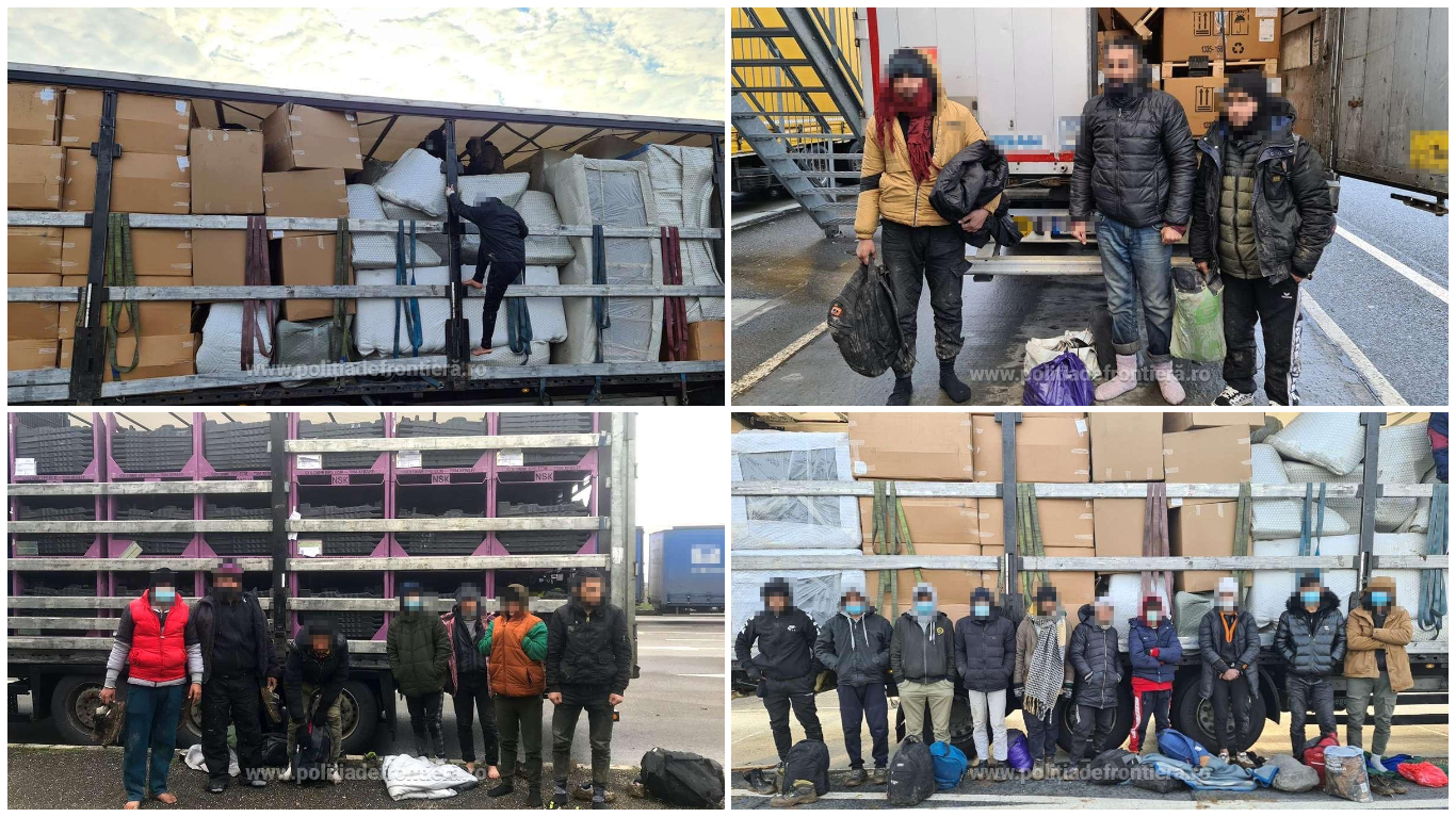 Opt migranți au fost găsiți, miercuri dimineața, în remorca unui camion condus de un cetățean turc în vârstă de 50 de ani. Bărbatul a auzit zgomote în interiorul remorcii și a oprit într-o stație de carburanți situată pe strada Dorobanți. Conducătorul camionului se deplasa dinspre Calea Bodrogului.