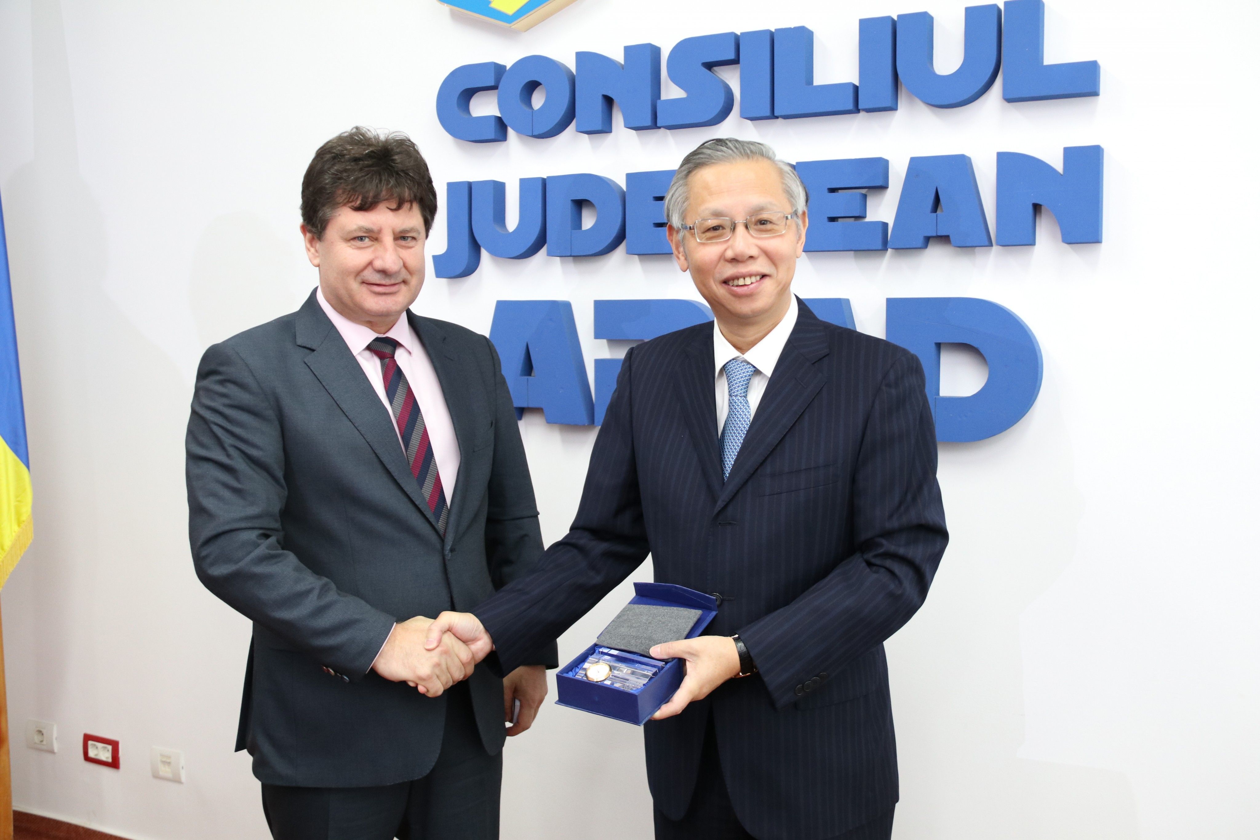 Iustin Cionca, preşedintele Consiliului Judeţean Arad, a primit joi, 2 noiembrie, vizita delegaţiei Universităţii Medicale Chineze din Zhejiang – China, prezentă la Arad la invitaţia prof. univ. dr. Aurel Ardelean, preşedinte al Universităţii de Vest „Vasile Goldiş” şi a prof. univ. dr. Coralia Cotoraci, rector al Universităţii de Vest „Vasile Goldiş”.