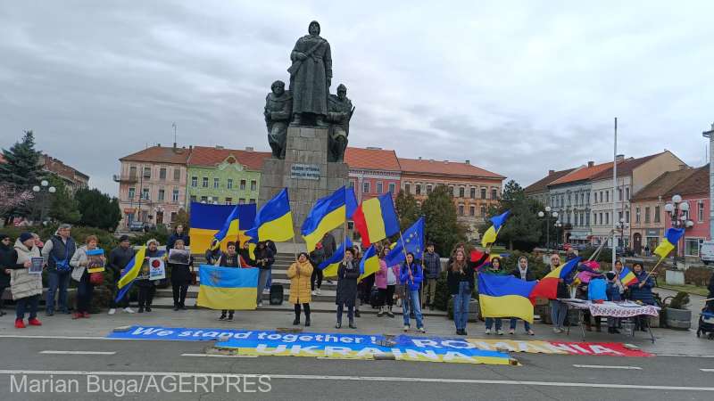 Comunitatea ucraineană din Arad a organizat, sâmbătă, o manifestaţie de comemorare la împlinirea a doi ani de la începutul războiului, la care a împărţit trecătorilor prăjituri, colaci şi clătite, ei mulţumindu-le totodată românilor pentru sprijinul arătat după invazia ruşilor.