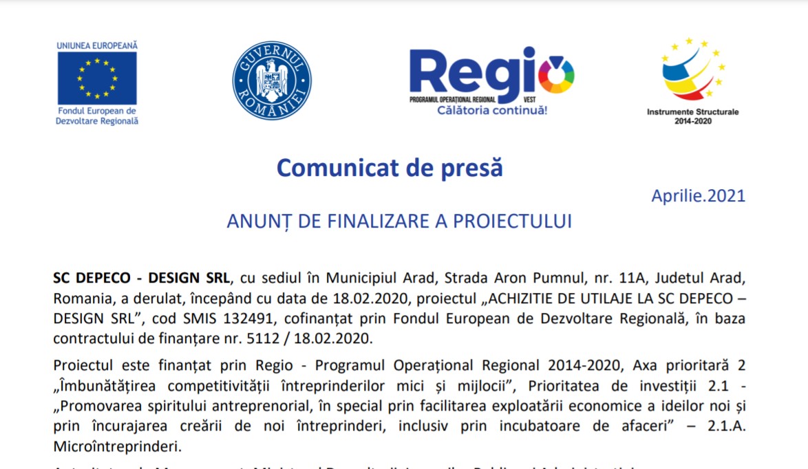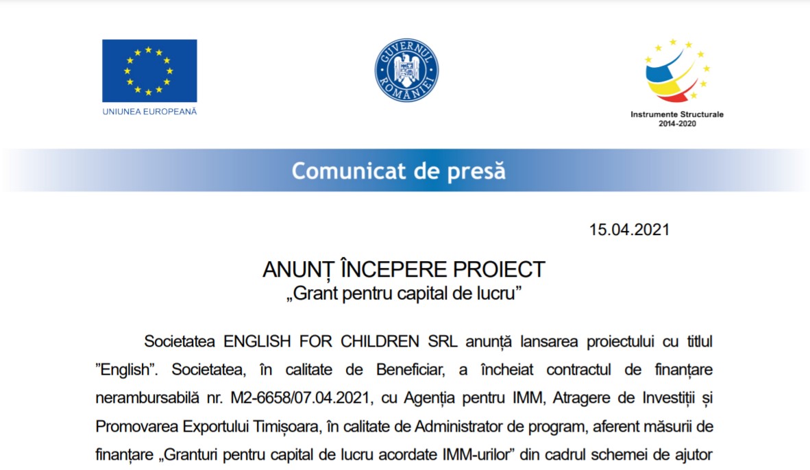“Granturi pentru capital de lucru acordate IMM-urilor” din cadrul schemei de ajutor de stat instituite prin ORDONANTA nr. 130 din 31 iulie 2020 privind unele amsuri pentru acordarea de sprijin financiar din fonduri externe ne-rambursabile, aferente Programului Operational Competitivitate 2014-2020, in contextul crizei provocate de COVID-19.