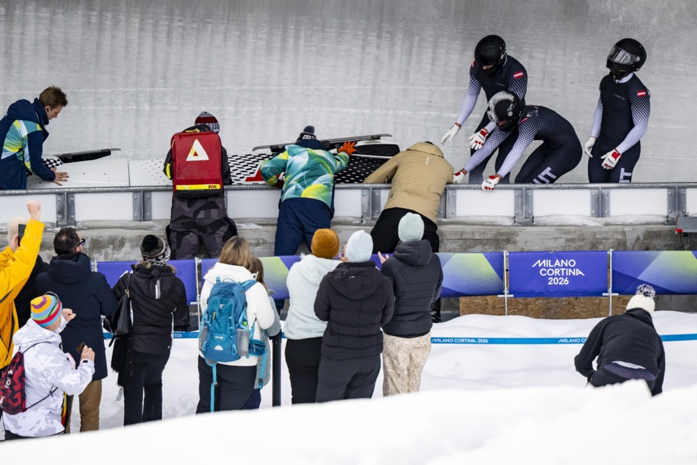 Bobul masculin de 4 al Austriei s-a răsturnat, sâmbătă la prânz, în timpul probei olimpice de la Milano-Cortina, alunecând timp de aproximativ treizeci de secunde pe gheaţă, incident care a întrerupt temporar a doua manşă, informează AFP.