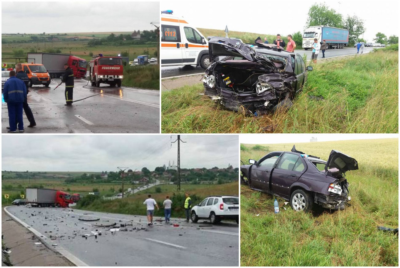 Un autoturism marca BMW cu numere de Timiş a fost transformat într-un morman de fiare în urma impactului cu un TIR, incident ce a avut loc la Vinga, pe DN 69 (Arad-Timişoara). Impactul a fost atât de puternic încât motorul maşinii BMW a fost aruncat la câţiva metri, iar bucăţi din autoturism au fost împrăştiate pe şosea pe o distanţă de zeci de metri.