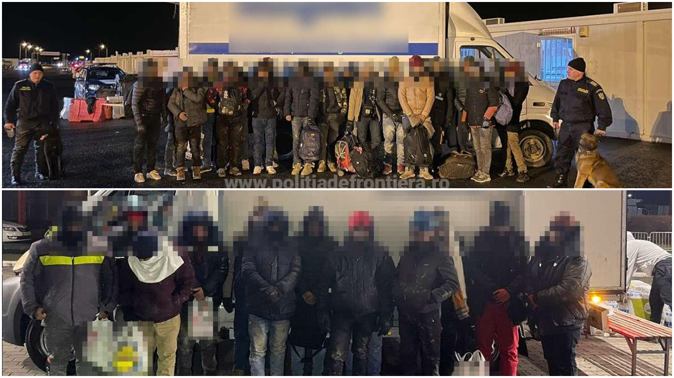 În ultimele 24 de ore, poliţiştii de frontieră din cadrul Punctului de Trecere a Frontierei Nădlac II au depistat, ascunşi în două autoutilitare şi un autocamion, 38 de cetăţeni din Turcia, Siria, Sri Lanka și Irak care au încercat să treacă ilegal frontiera în Ungaria. Şoferii mijloacelor de transport, patru cetăţeni români, sunt cercetați pentru săvârşirea infracţiunii de trafic de migranţi, urmând ca la finalizarea cercetărilor să fie dispuse măsuri legale care se impun.